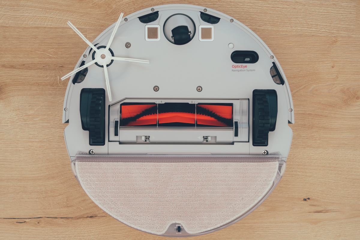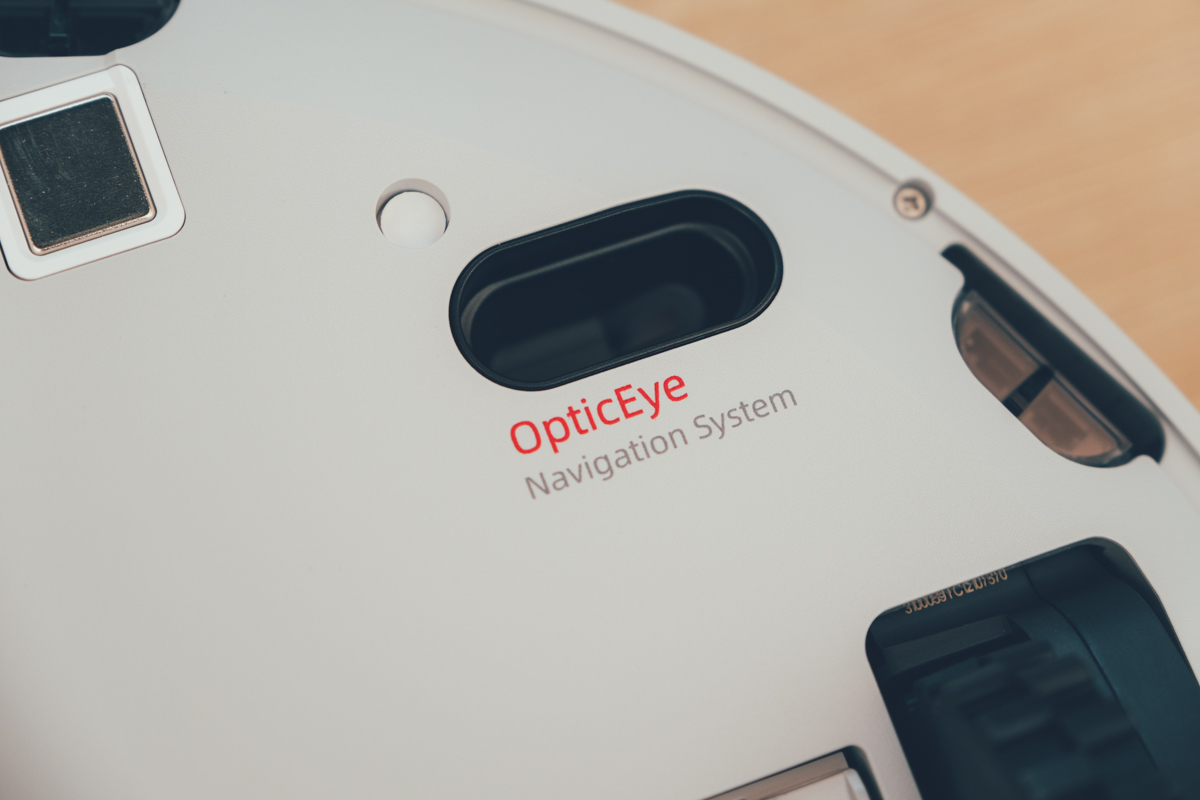 在機身的底部與 E4 同樣搭配了雙光學 Laser 及 Led 運動追蹤傳感器,以高頻率拍攝地面,再進行前後圖片的比對分析,就可以清楚的知道機器人走了多遠,再加上機身內建雙陀螺儀獲得的角度資訊,就可以得到非常精準的移動路徑,這也是為什麼沒有 LDS 還是可以準確的行走清潔。