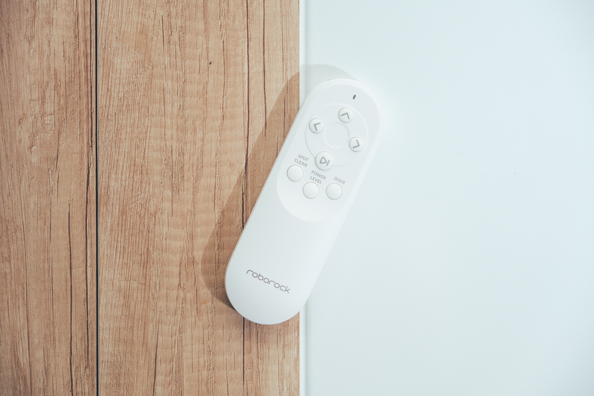 為了讓家中不習慣 APP 操的長輩們更加的便於操作,也不需要彎腰去啟動掃地機,Roborock 石頭掃地機器人 E5 搭配了一組專用的遙控器,而且背面還加入了磁吸設計,你可以直接將遙控器吸附在磁鐵能吸附的材質上,像阿湯家裡書房旁就有個金屬白板,或者像很多冰箱也可以吸附磁鐵,方便遙控器的收納。