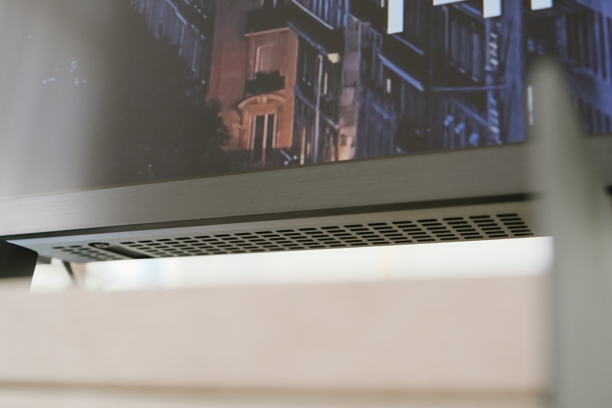 揚聲器設計在電視的最下方,左右分別各搭載 15W 的喇叭,搭配內建的 Dolby Atoms 可以感受杜比全景聲帶來的好音質。
