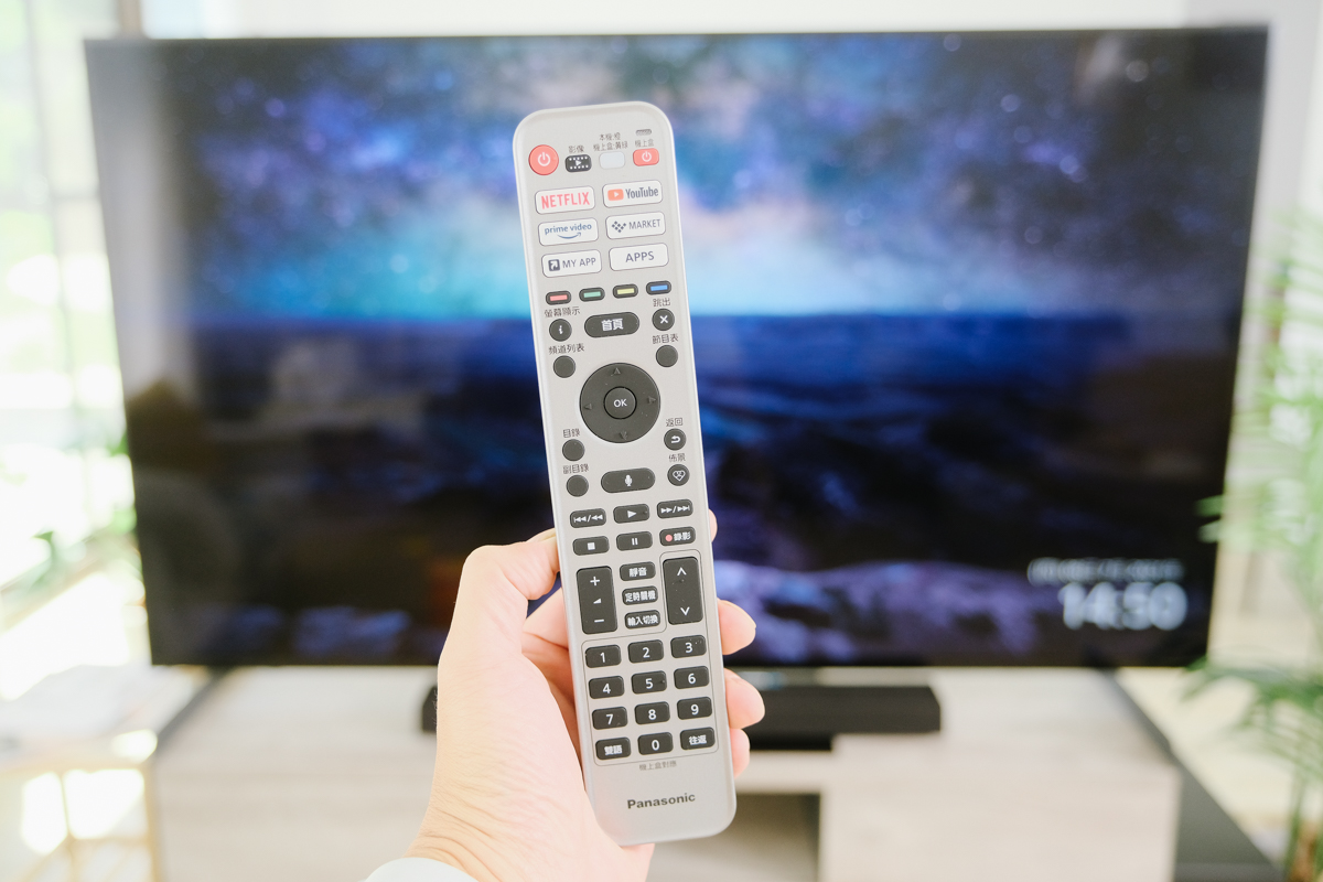 遙控器的部份,功能超完善,從上到下包括影音的快捷鍵,像是阿湯常用的 Netflix 跟 YouTube 都在其中,中間還有一鍵錄影功能,只要你將行動硬碟接上電視,隨時想要錄影的話,只要按一下就搞定超方便,這樣如果有什麼電視節目你來不及看的話,也可以請家人幫忙錄下來啦。