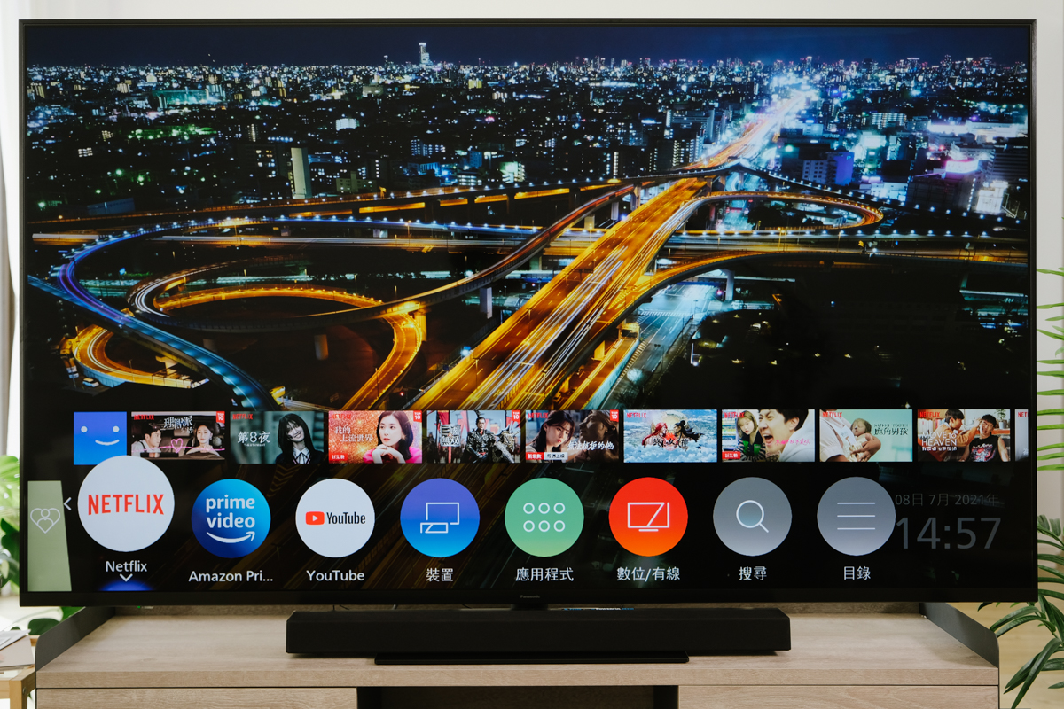 Panasonic TH-75JX980W 的介面採用他們獨家設計的 my Home Screen 我的首頁 6.0,平常只要按下首頁,就會在下方呼叫出快捷功能列,直接就可以選擇常用的 APP 來使用。