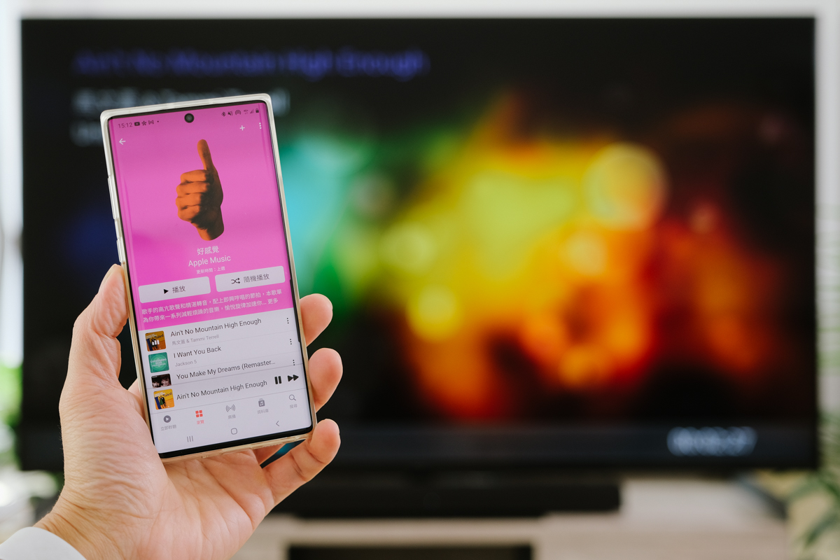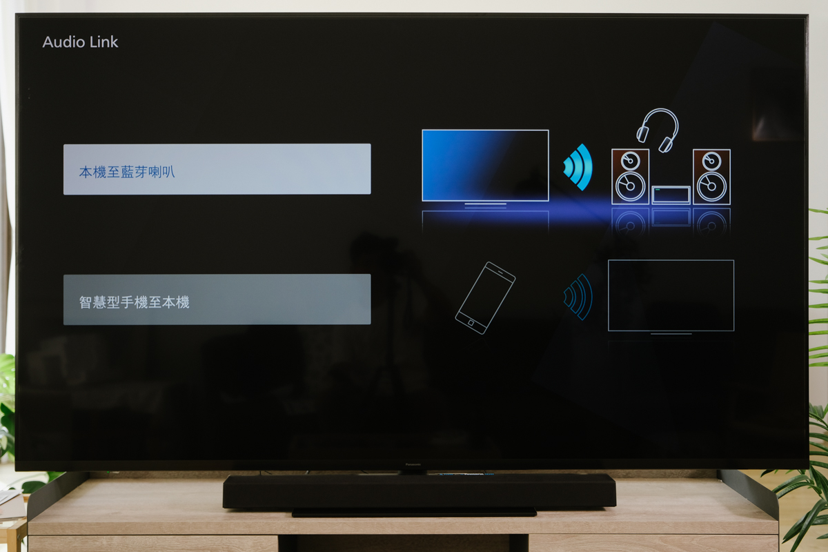 Panasonic TH-75JX980W 除了透過藍牙可以連接至耳機、Sound Bar 等裝置外,本身也可以做為接收者,利用電視的揚聲器來播放音樂,這樣平常在家要聽音樂時,也可以直接從手機連結電視來播放。