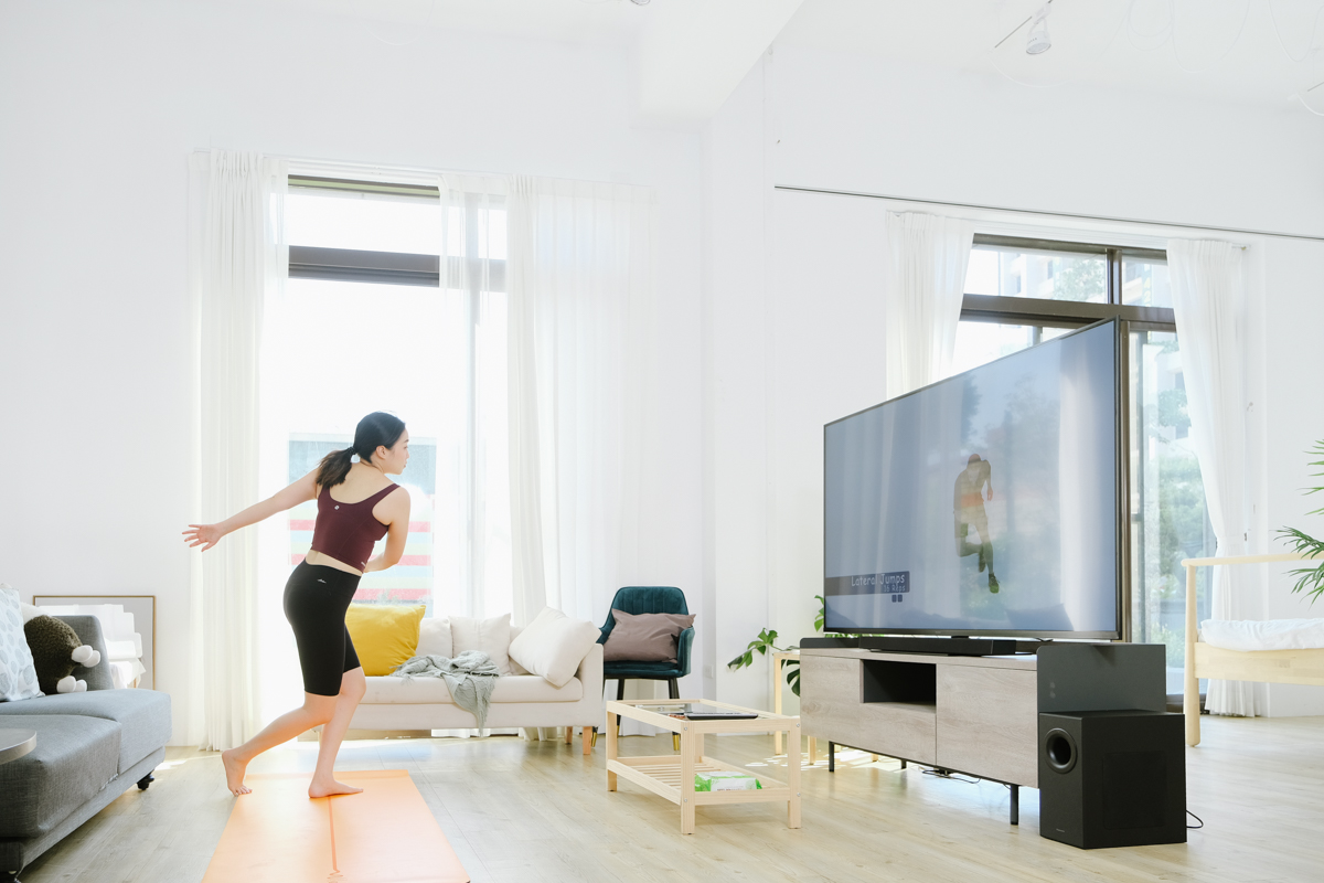 像顆老大就很常會在手機上找好當天要跟著運動的 YouTube 影片,直接用鏡像分享的方式到電視上來看,她也說這樣 75 吋超大電視跟著運動很有教練一對一的感覺,很像真人就在你面前。