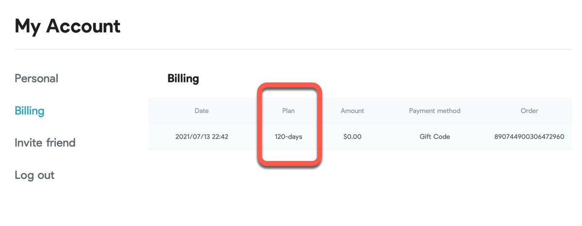 成功兌換後,就可以在 Billing 裡查看到獲得了 120 天使用時間,一共有 4 個月,算是相當佛心。