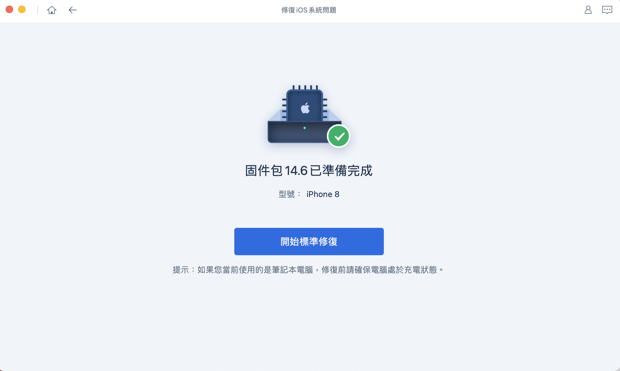 按下開始標準修復後,就只要等待即可,約莫 5-10 分鐘內就搞定了。