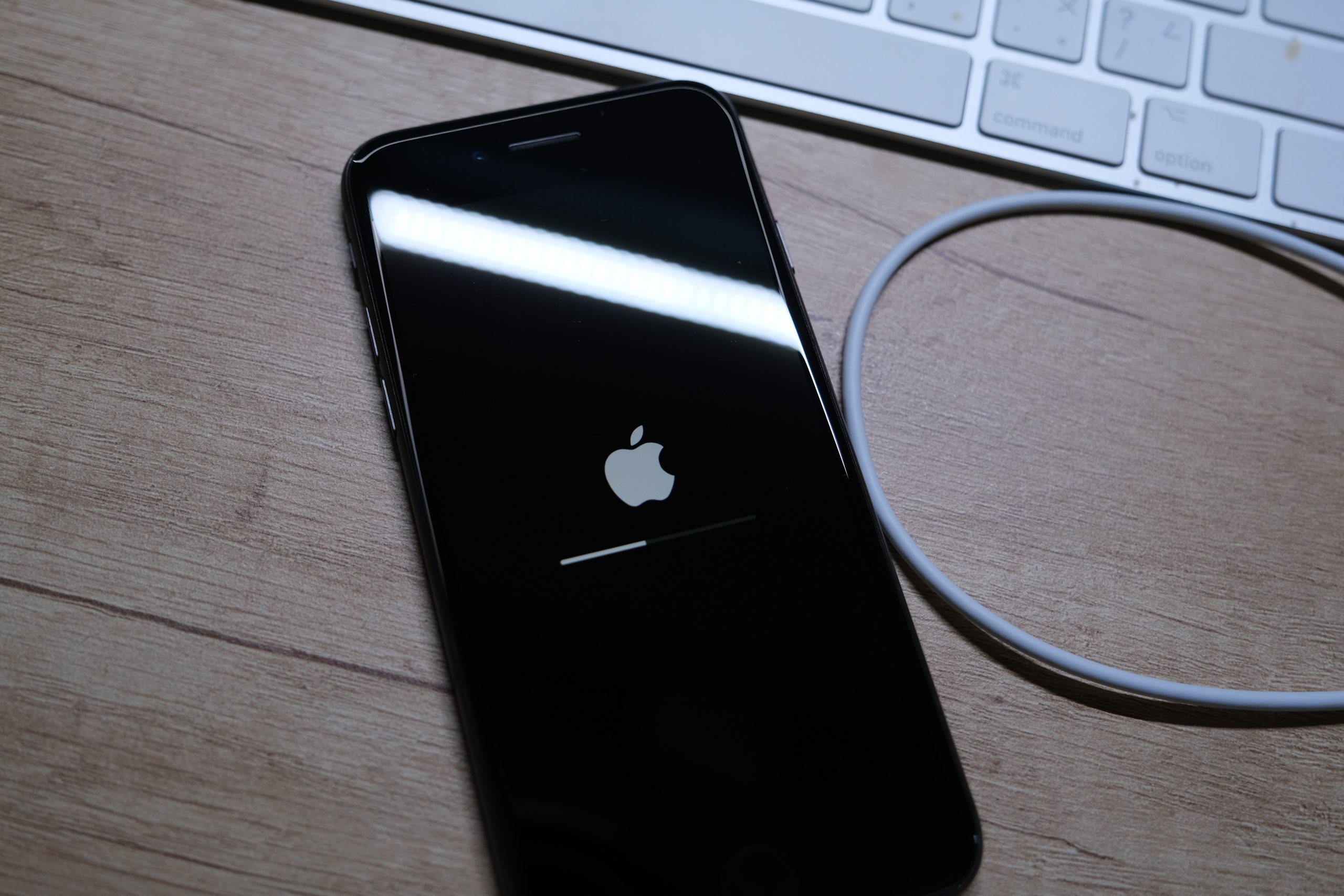 而更常見的就像這樣,直接就是送你一顆白蘋果,畫面就這樣定住了,也有人是卡在恢復模式等,問題其實不少。