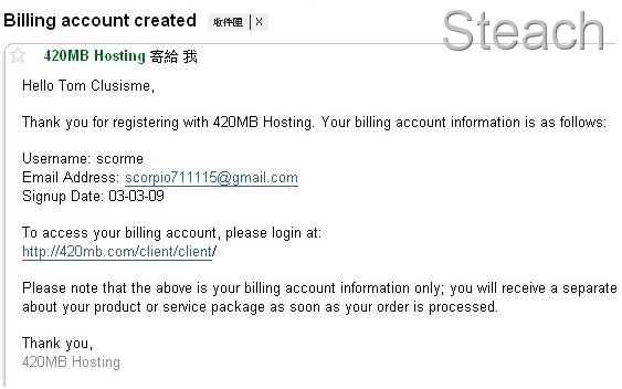 FTP就是你的域名:帳號.420mb.co.cc 登入帳號及密碼同一般帳戶 CP後台登入:即信上的帳號.420mb.co.cc:2082 如果要綁定網域,下面的ns1與ns2即為NS記錄SQL的開通及後台網域設定可參考以下文章
