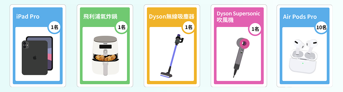 講了那麼久的七徽章,到底可以用來抽什麼,每獲得一枚七徽章就可以有一次抽獎機會,其中最大獎就是 iPad Pro,其它還有阿湯自己最愛用的飛利浦氣炸鍋,Dyson 無線吸塵器以及很多美髮業者都在用的 Dyson Supersonic 吹風機,最後則是有 10 組 Air Pods Pro,不論是哪一個我覺得都很令人心動,準備要來狂存外匯了。