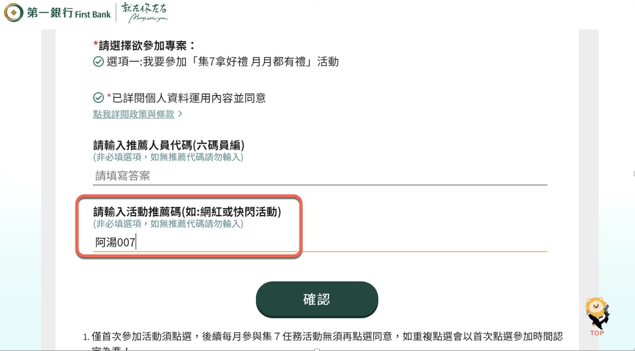 阿湯自己本來就有第一銀行的帳戶,所以參加活動比大家(快去申請再往下看比較不會羨慕我)更快下手,阿湯參加活動的心得是:「七徽章要獲得真的很容易!」像是新台幣結購外幣活存或外幣定存只要達標就可以獲得,而且沒有上限,所以如果你原本就有在購買外幣或投資外幣的話,等於是額外的再多一個抽獎的機會,何樂而不為啊!像阿湯本來就有定期的美金收益,我只要放進第一銀行定存就會有七徽章來抽獎了,嗯,再說下去就爆雷了,大家往下來看一下活動詳細內容吧,一起抽抽抽~~~
