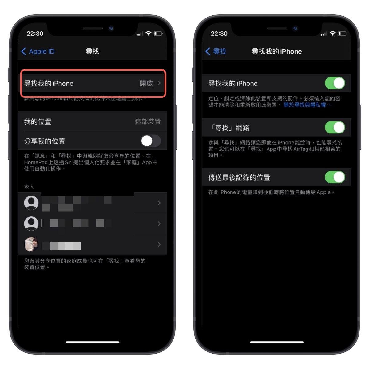 iPhone 11 以上的機型記得打開「尋找」功能