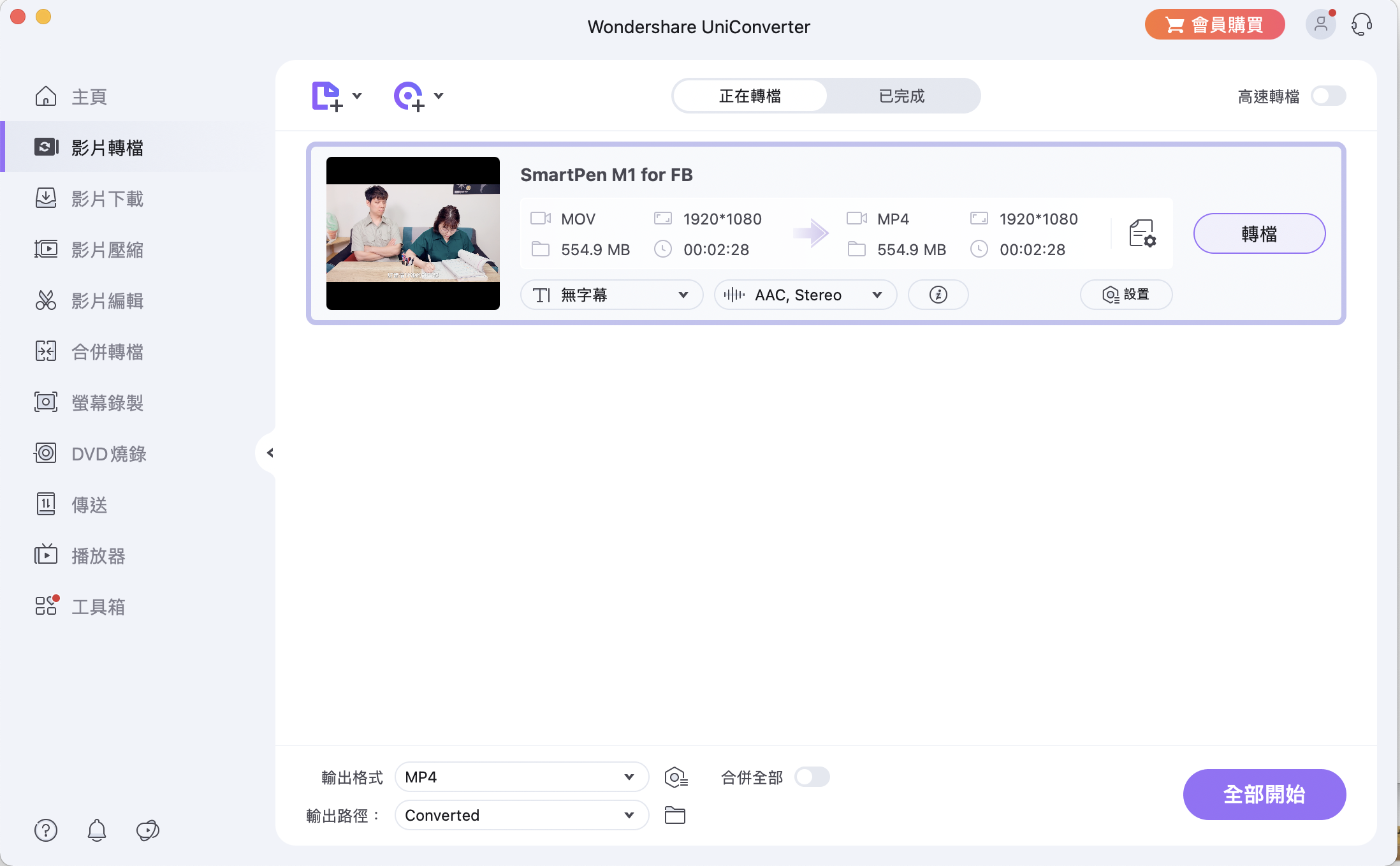 如同前面提到的,他們的軟體很多元外,也很喜歡在每一款軟體置入很多功能,像他們推出的 Wondershare UniConverter 這款轉檔工具,支援多種影音格式轉換(包括 MOV 轉 MP4),而且樣在軟體內置入了非常多功能,或許你會覺得方便,也或許會覺得太多了。
