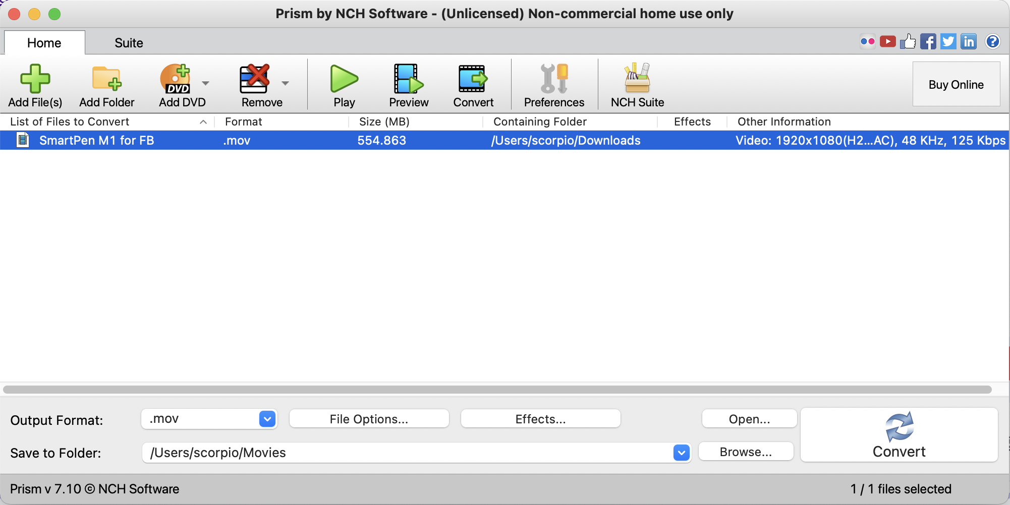 Prism Video Converter 其實我覺得長的比較像是免費軟體的感覺,不過售價確實相對來說也有比較低,但以 MOV 轉 MP4 測試下來,轉檔速度也是偏慢,品質我覺得大約 90 分,老牌軟體為什麼都不多點更新呢?