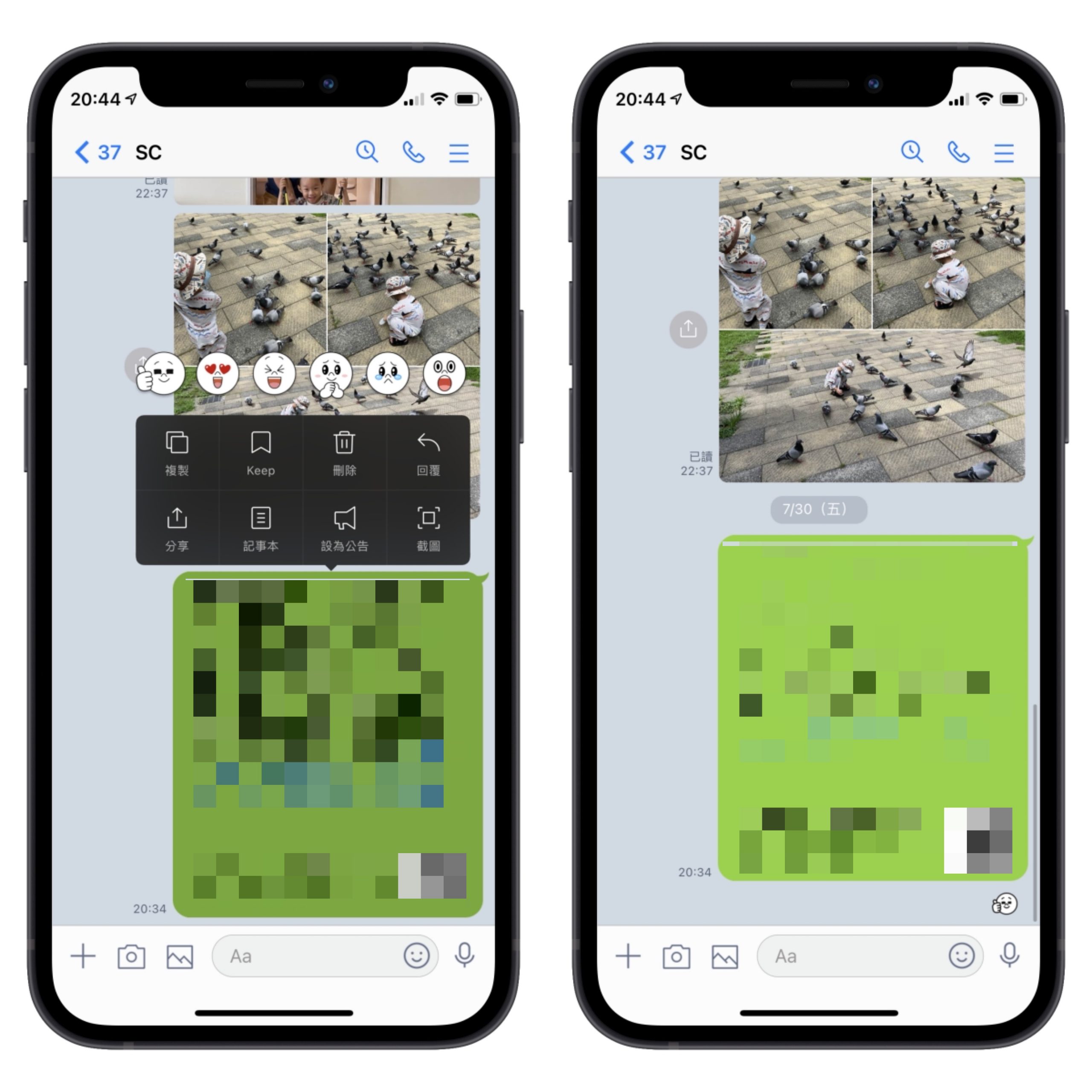 現在不論在哪一個聊天室,只要長按對話後就可以從六種表情符號選擇一個送出,針對某一個對話表達心情,這功能其實在 FB Messenger 也有類似的,反正好的就抄起來啦,這樣有時只想對某個對話表達個心情貼圖,就可以用這方法,可以少傳一個貼圖導致畫面刷太快。