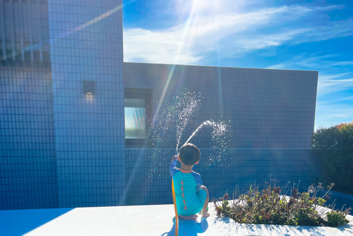 很多上班的爸爸們都不知道全職媽媽的辛苦,你看一天的行程,從早上起床後就要開始想說要跟湯包玩什麼,有時假日好天氣我們一早就會讓他去頂樓玩水,因為他很迷消防車滅火的情節...
