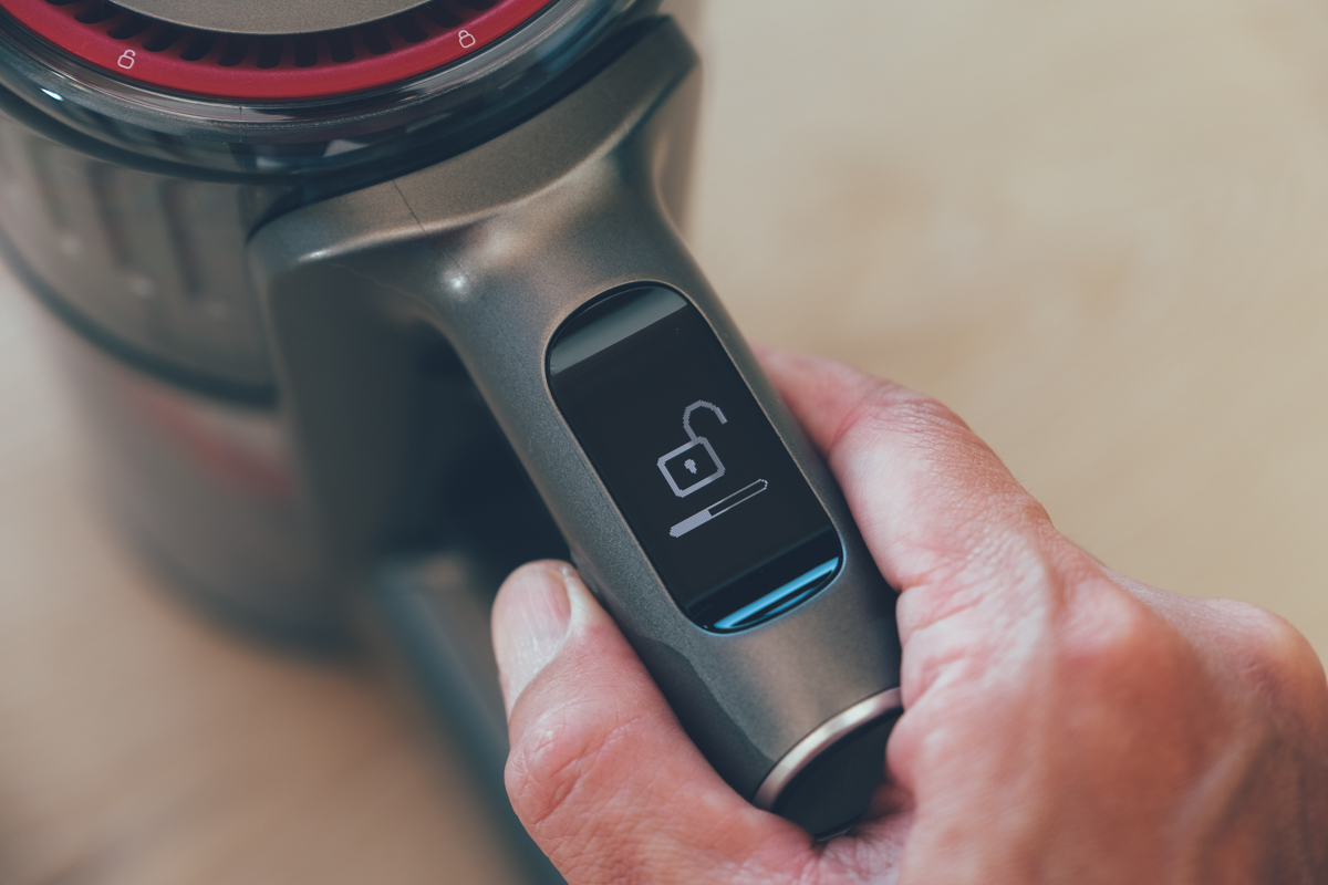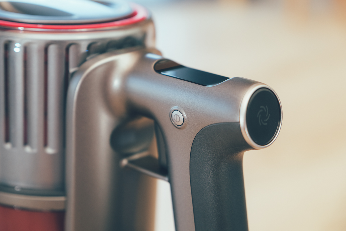 上面的 OLED 顯示螢幕資訊很詳細,包括有目前的鎖定狀態、電量以及吸力模式,當你在使用時也會顯示預估剩餘可用時間,以便我們在使用時查看。