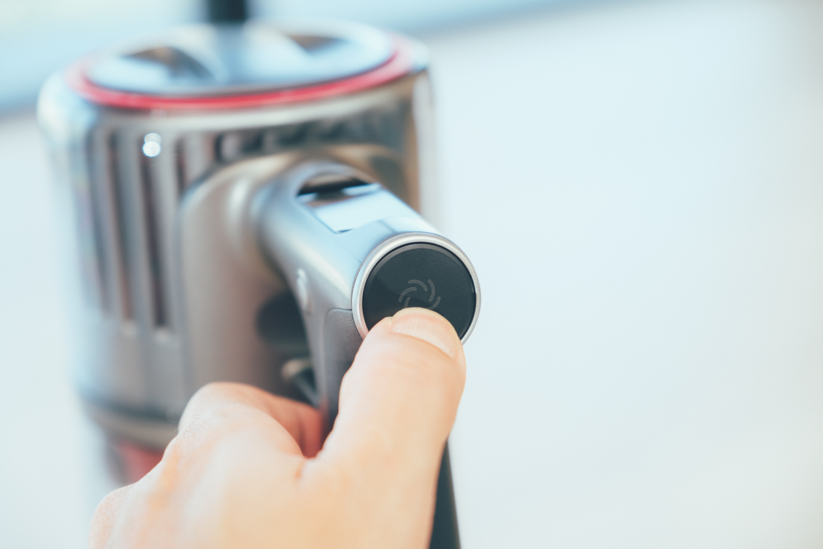 另外側邊的鎖定鍵現在也加入了兒童鎖的功能,只要長按就可以將吸塵器鎖住,可以避免小朋友誤玩(或故意玩...)。