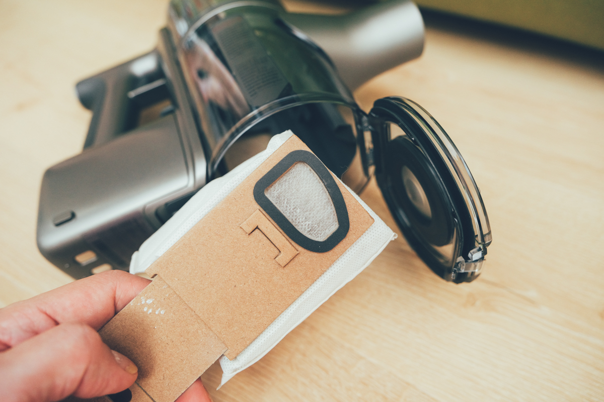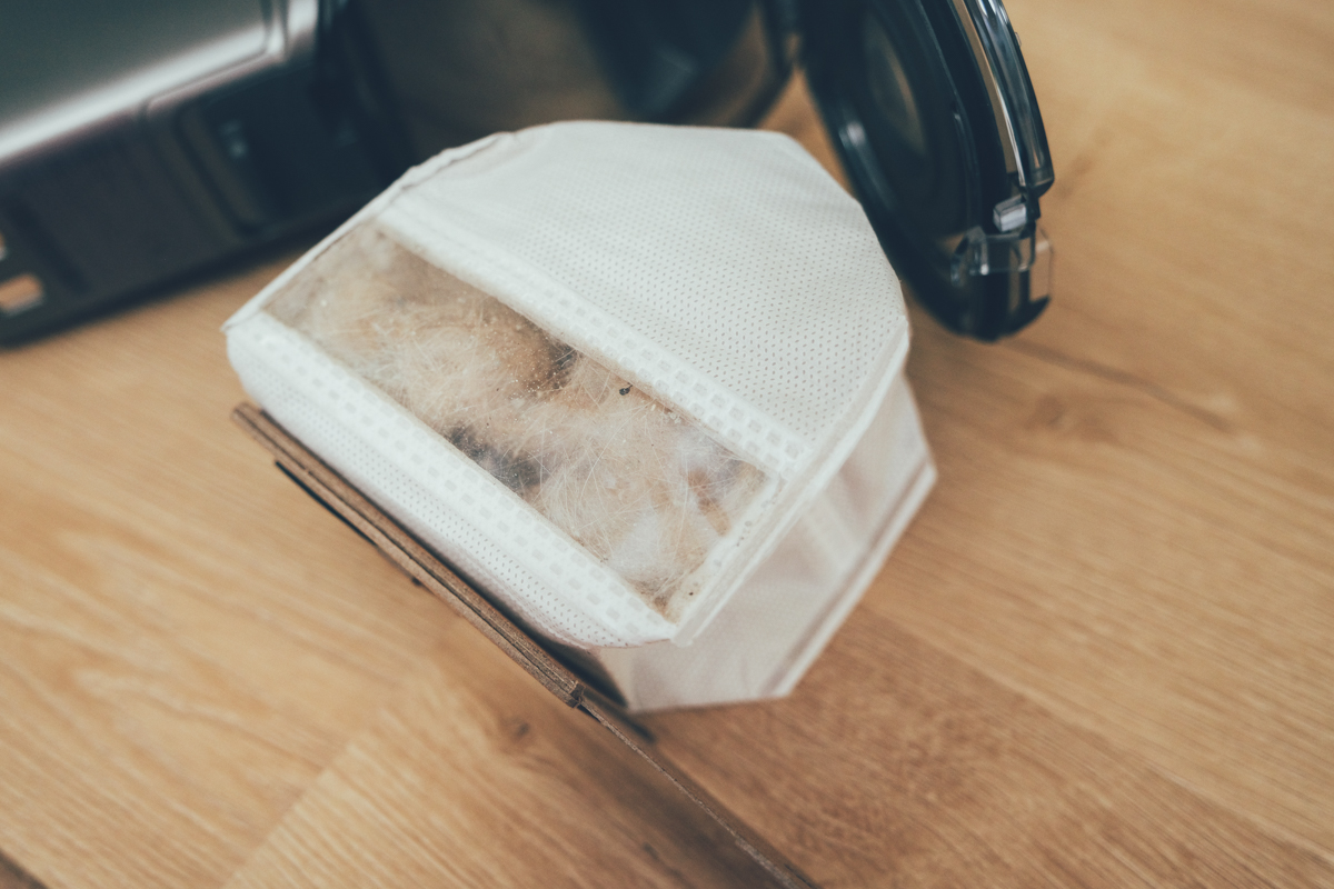 至於集塵袋會不會取出時造成垃圾掉出來?答案是不會,在你取出集塵袋的同時呢,也會將開口密封,直接就可以丟到垃圾桶或是暫時收在旁邊待下次繼續使用。