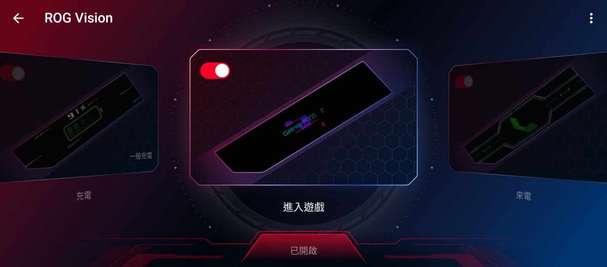 可以選擇哪些情況下背面的 ROG Vision 有作用,像是喚醒手機,切換成 X 模式、充電時,都可以自行個別設定是否要啟用。