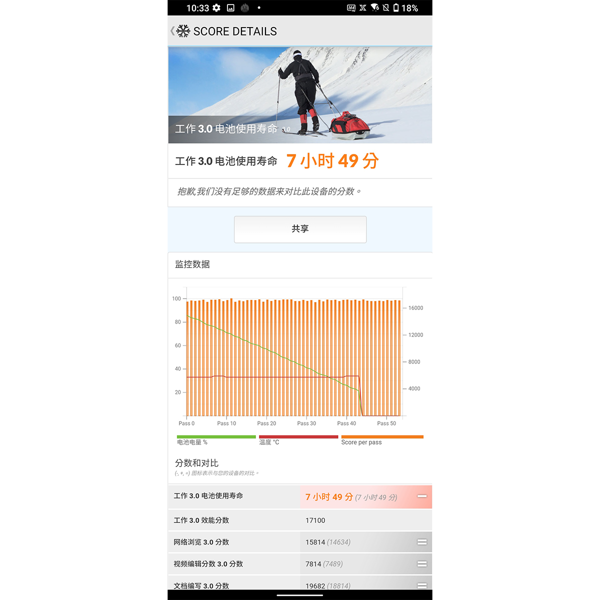 - 3DMark 的部份透過 Wild Life 獲得分數為:5915(分數是大於 99% 以上的手機)