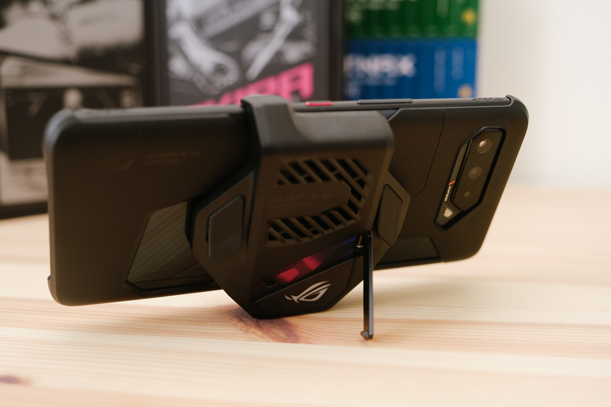 這個具有散熱效果的外接空氣動力風扇,官方測試透過這樣的搭配可以讓手機的表面溫度降低 15 度,特別是 ROG Phone 5s Pro 的 CPU 改為中置設計,讓 CPU 溫度透過外接動力風扇可以降低達 10 度,差異相當的大,背面也還有二個實體按鍵可以搭配使用(這 ROG Phone 擴充按鍵是否多的太方便)。