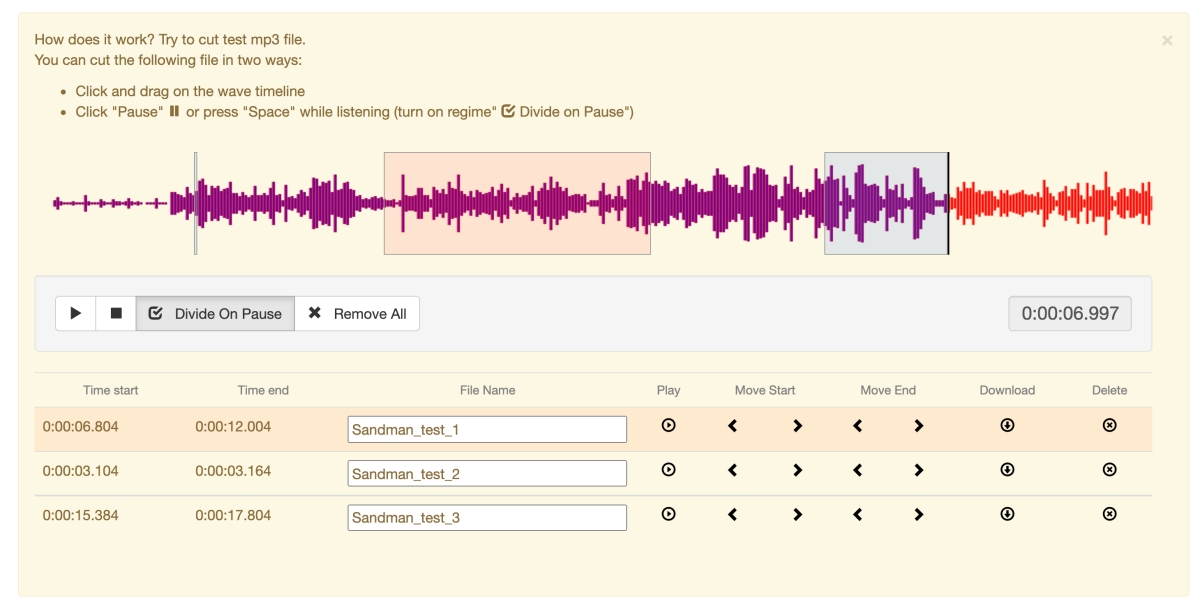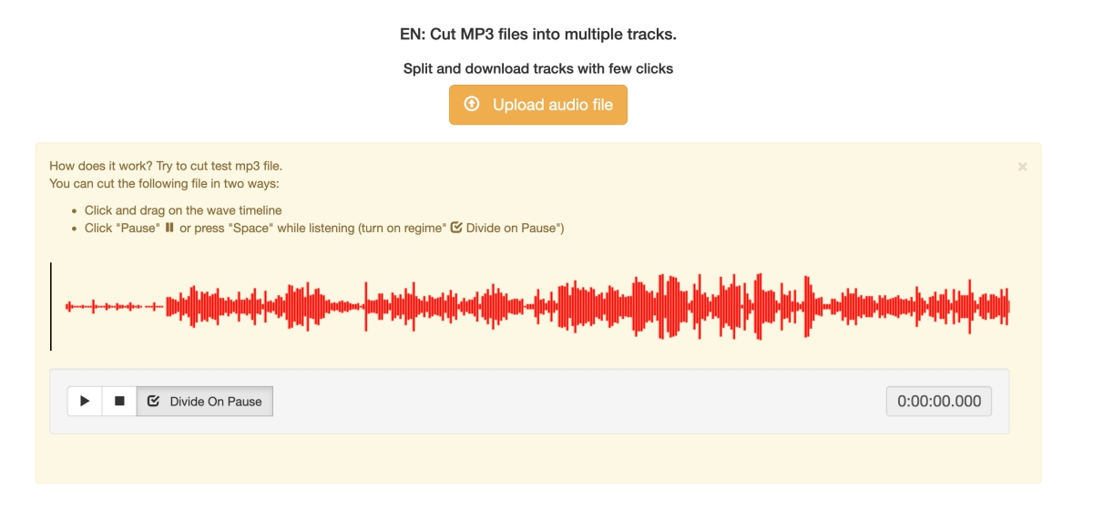 網站:https://mp3cut.foxcom.su/en/進入網站後,直接上傳要剪輯的 MP3 檔案,然後下方就會出現音軌。