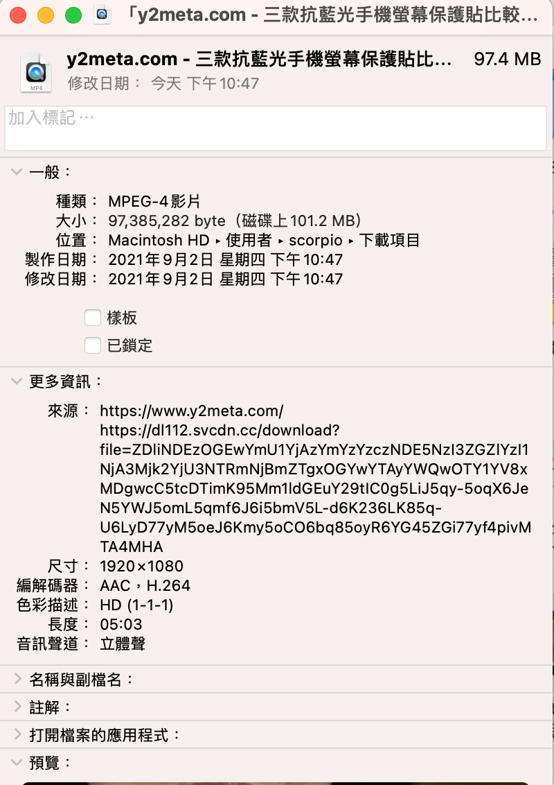 下載後阿湯試了一下,確實 1080p 是有影有聲的,沒有問題,檔案很小一個,代表壓縮率頗大的,不過能夠直接下載也算是方便啦,加減用還是不錯的。