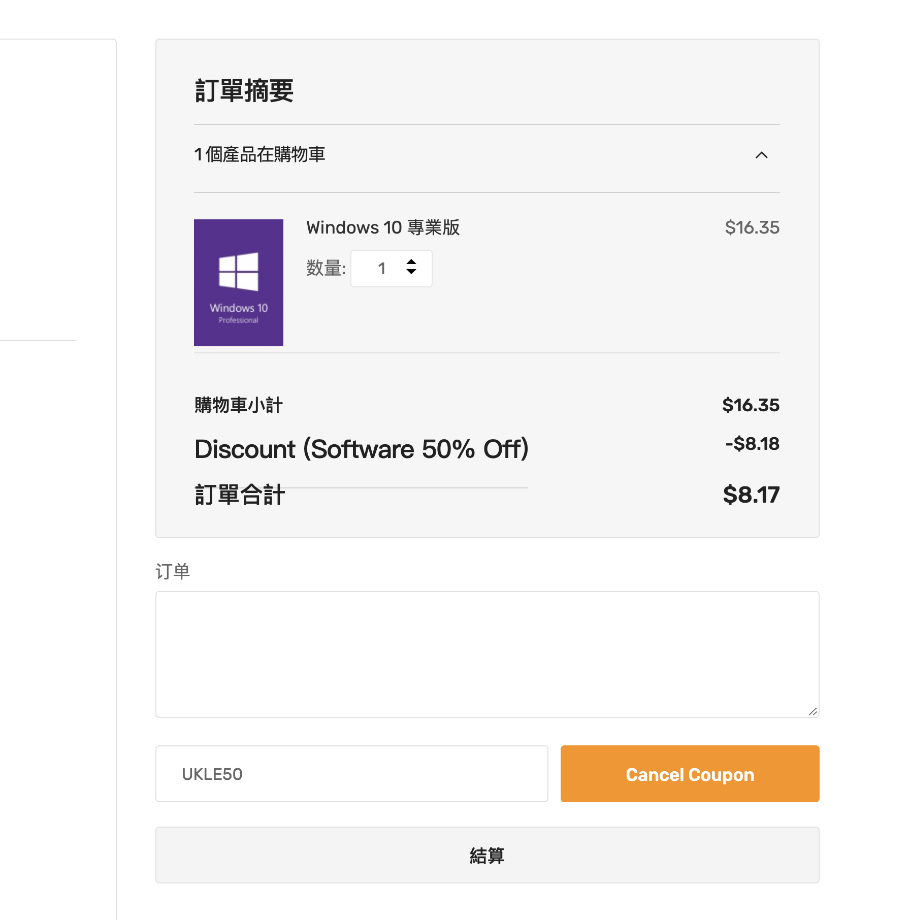 - Windows 10 專業版:USD 8.18(約 NTD 226)