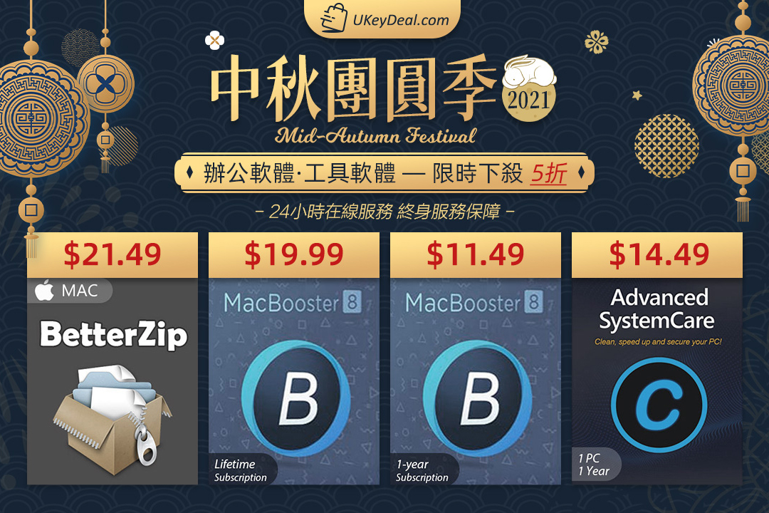 - MacBooster 8(1 年訂閱)USD 11.49 (約 NTD 318)
