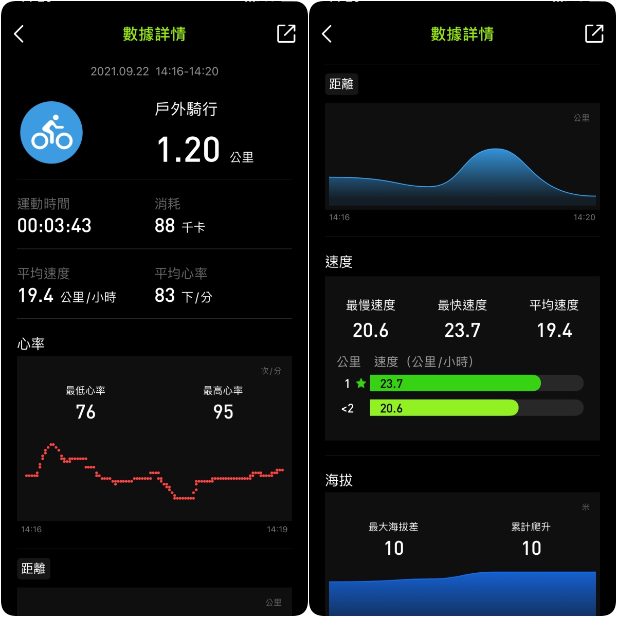 最後講一下運動的部份,運動偵測的部份支援 20 種室內/戶外活動,omthing E-Joy 智慧手錶沒有內建 GPS,必須倚靠手機進行定位,所以會有二種情況,假設你是要戶外騎腳踏車,如果不透過手機的情況下是可以記錄的,但只會有心率、消耗的卡路里跟運動時間,如果你想要有更多的資訊,只要透過手機啟動 APP,利用手機來定位及記錄,就會包括有速度、距離、運動軌跡等資訊,並且聯動手機記錄心率,透過更詳細的資訊,計算出來的消耗熱量相對也會更加精準。