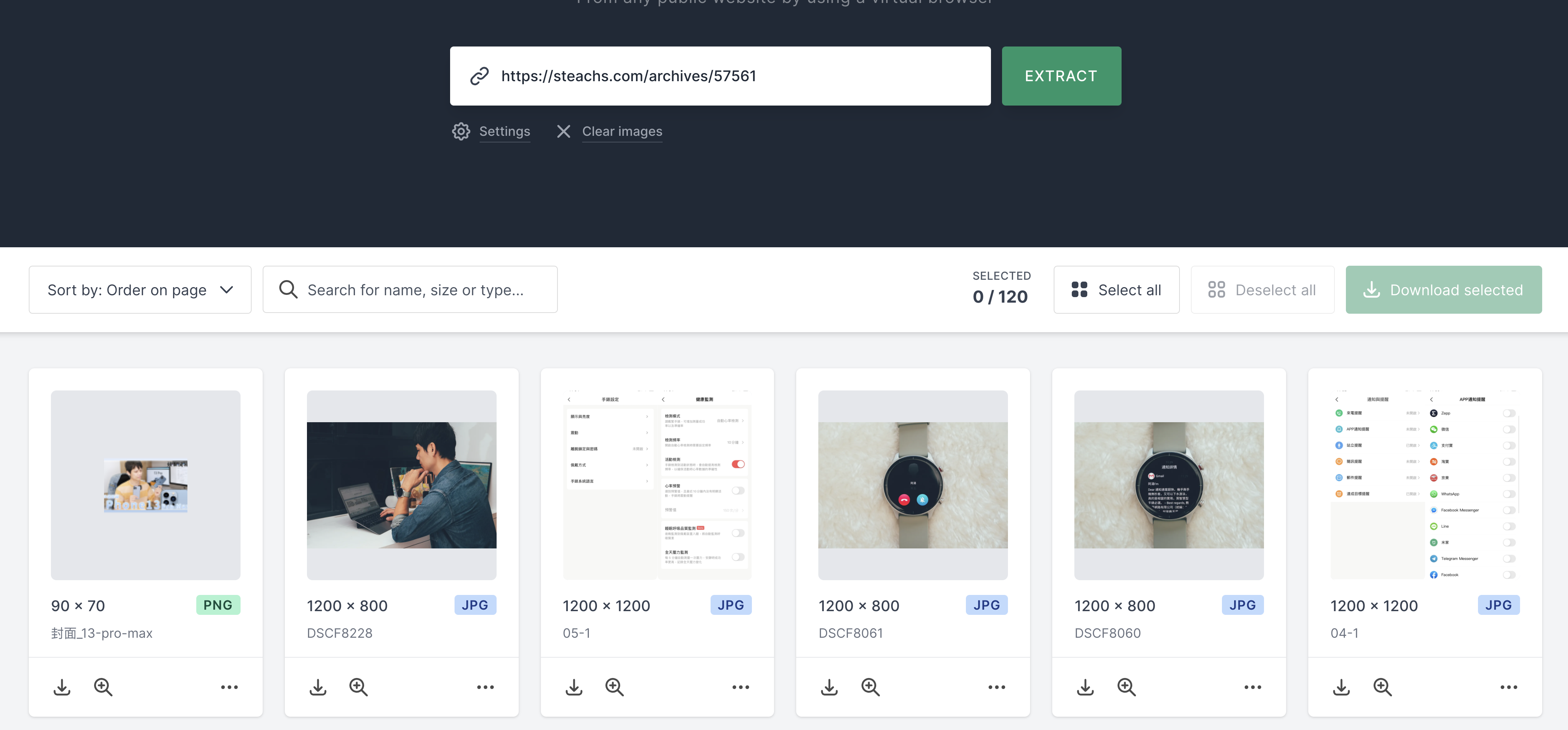 首頁 › 線上工具/服務 › Image Extract - 一鍵下載網頁上看到的全部圖片,也可以單獨下載 Image Extract - 一鍵下載網頁上看到的全部圖片,也可以單獨下載 發佈日期:2021/9/29 作者:阿湯 分類:線上工具/服務 有時候在收集圖片素材時,看到某篇文章裡有滿滿的照片,想要下載的話,有時我會使用的方法是複製後存到 Word 檔裡,然後再將 Word 轉存成 HTML 檔案讀取出全部圖片,但這樣的問題時,包括自己沒有要的圖片也會一併下載回來,需要再花個時間整理,今天來分享一個線上服務 Image Extract,可以直接讀取你想下載圖片的頁面,全部圖片讀取後選擇想要下載的內容,或一次全部下載都可以,相當方便。 Image Extract - 一鍵下載網頁上看到的全部圖片 網站:https://extract.pics/ 進入網站後,在網址列貼上想要下載圖片的頁面,按下 EXTRACT。 然後就可以選擇你想下載的圖片進行下載,或直接全部選擇後一鍵下載,就這樣輕鬆的搞定啦。