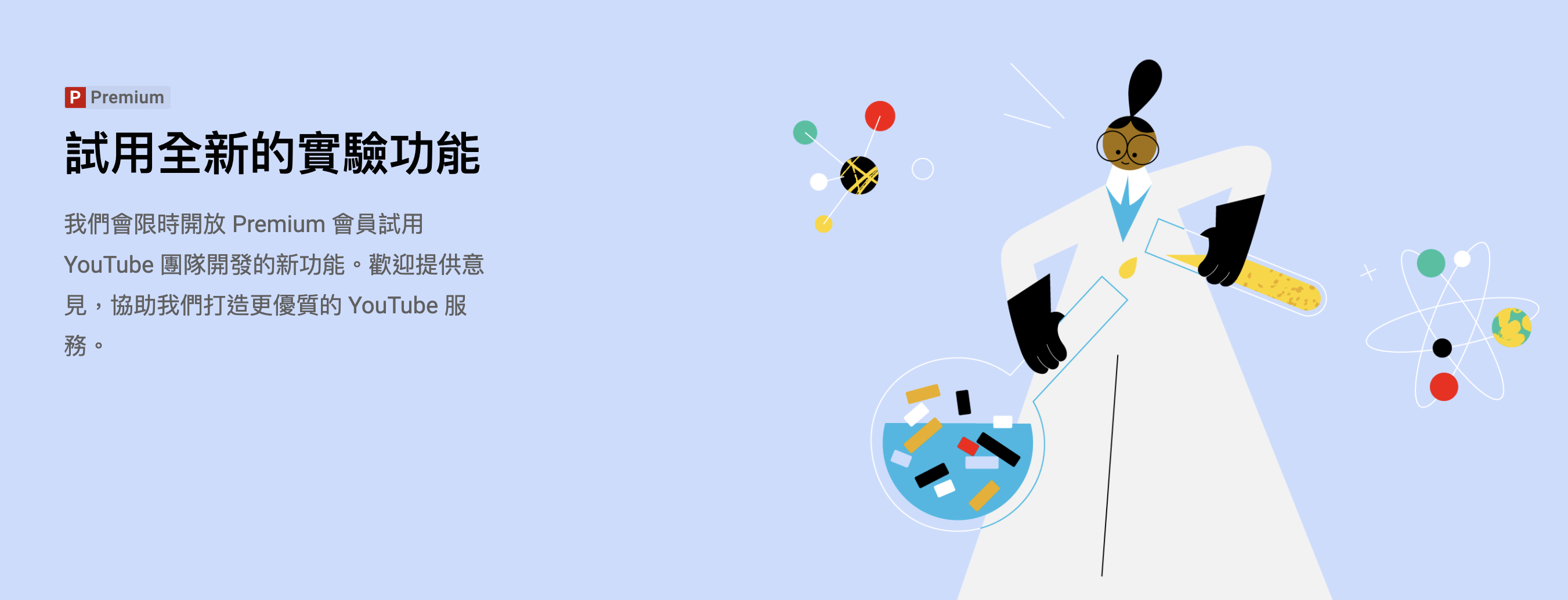 登入 Google 帳號後,進到 YouTube 實驗功能畫面(