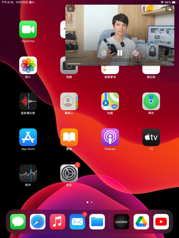開啟之後,不論是 iPhone 或 iPad 的 YouTube 就可以以小視窗的方式顯示在畫面上了,相當的便利,希望這趕緊變成正式功能。