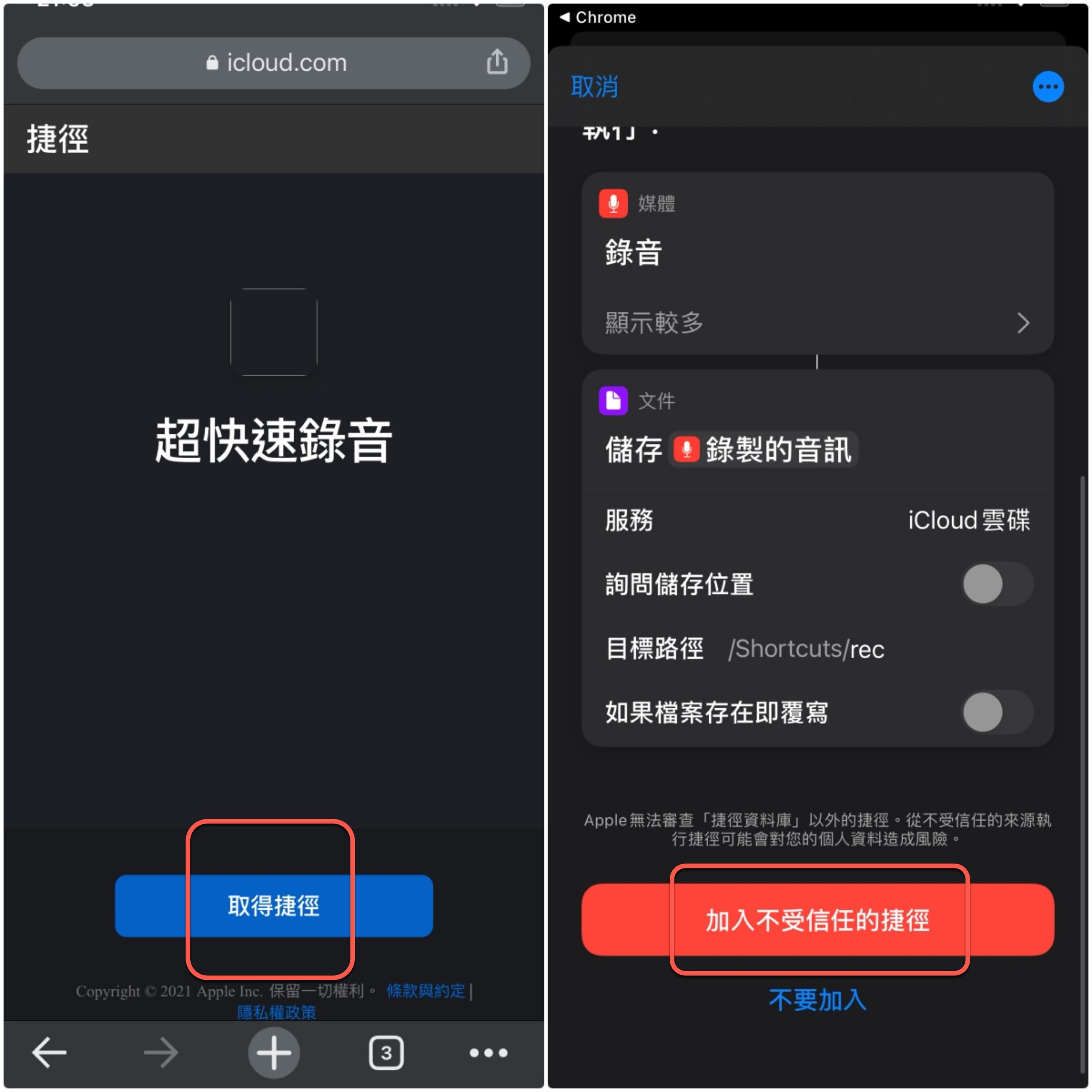 使用 iPhone 點擊上述連結後,將捷徑加入。