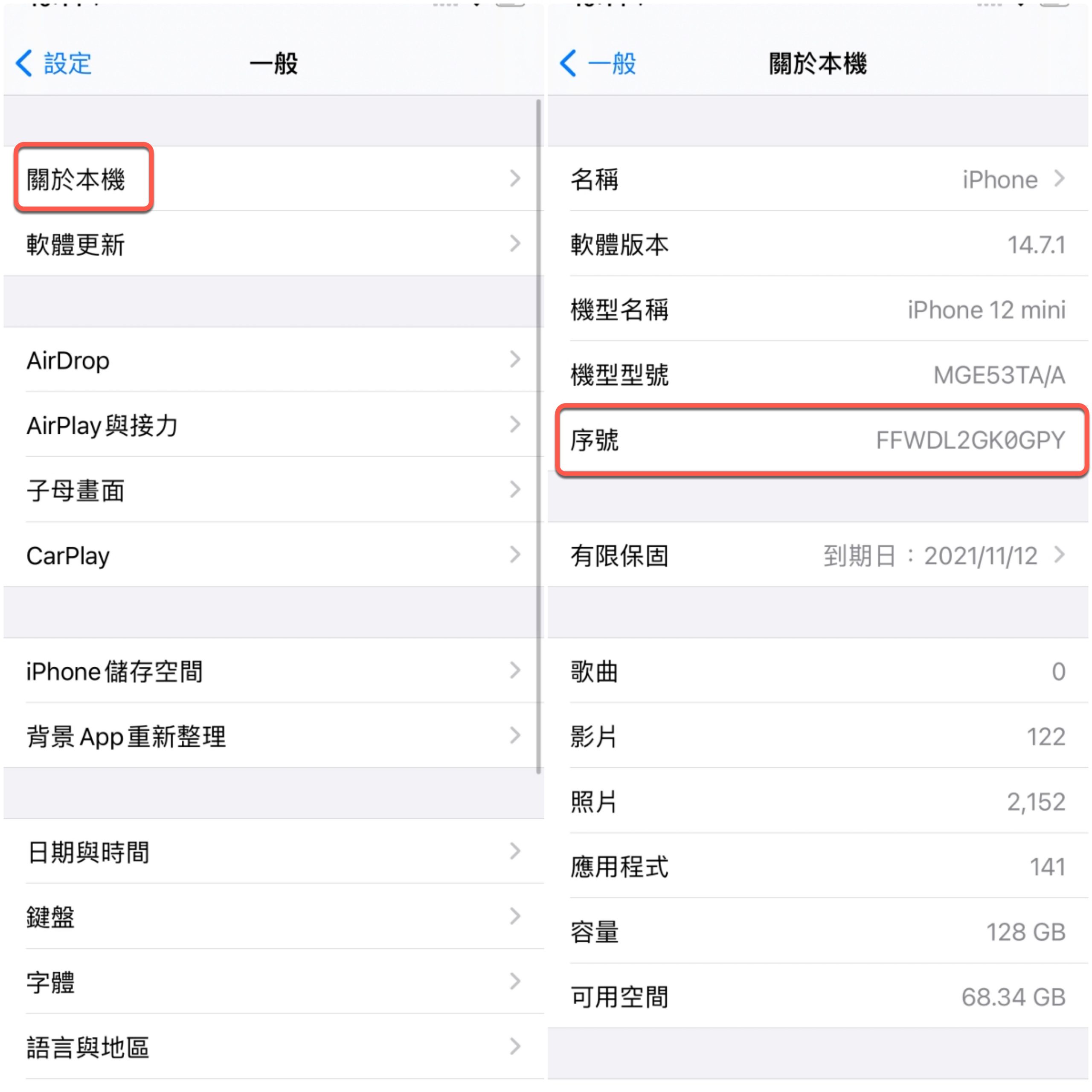 iPhone 只要進到設定 > 一般 > 關於本機,就可以找到序號,而以前沒有的保固期限,現在也都能在這裡找到,而蘋果所有裝置的序號都不是憑空而來的,這些字母都是有根據的,阿湯往下來跟大家分析一下。