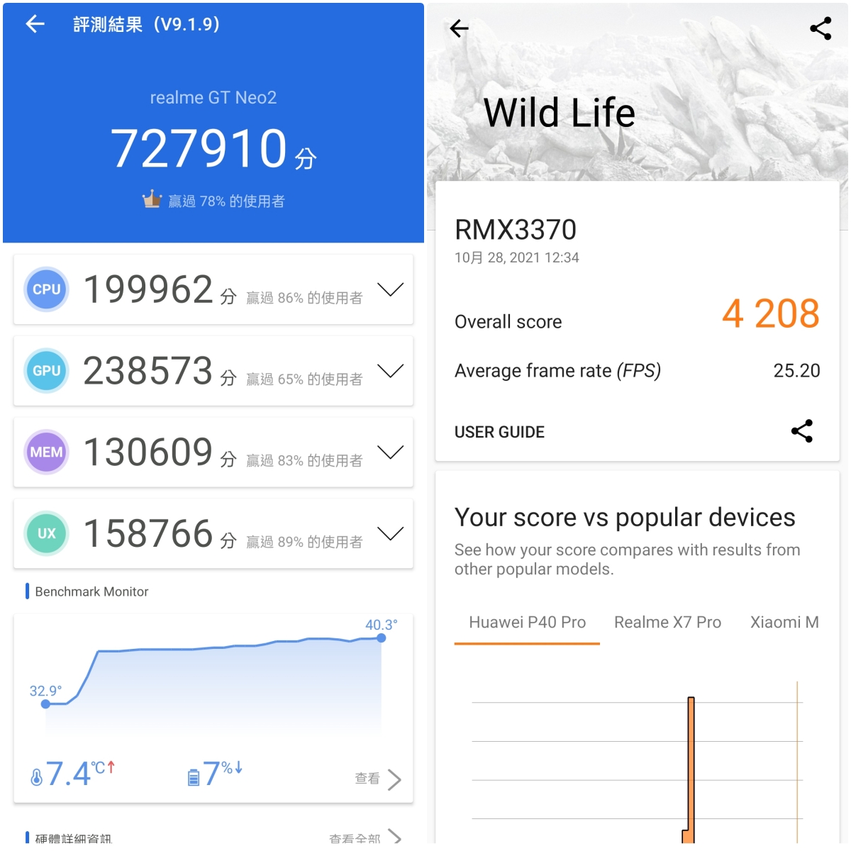 透過安兔兔跑分獲得 72 萬以上的分數,而 3DMark 的部份透過 Wild Life 獲得 4208,這樣的效能阿湯也試過用來玩原神,完全沒有問題。