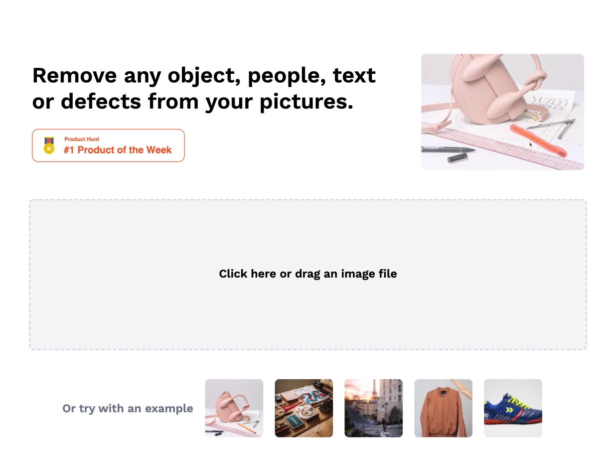 網站:https://cleanup.pictures/首先將你想要 P 的圖直接上傳,拖曳到中間的框框就可以了。