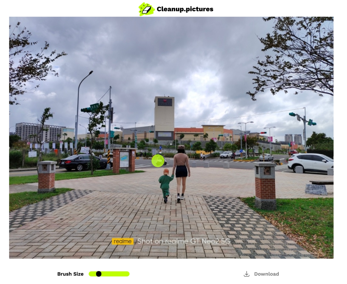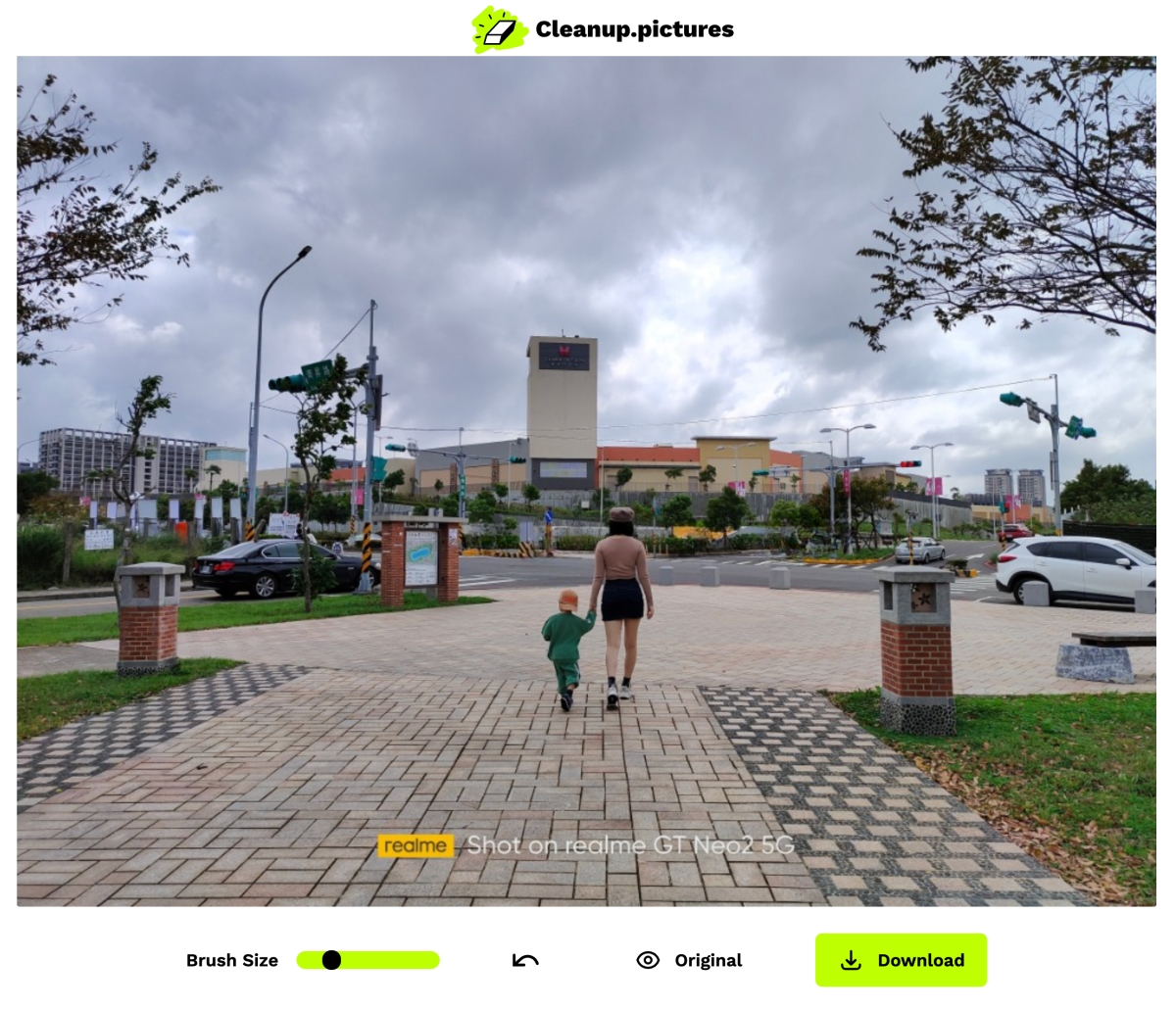 先給大家看一下原本的圖片,我們就來試試去掉路上的人、摩托車跟汽車,直接在下方選擇筆觸的粗細後就可以抹在你想移除的部份。