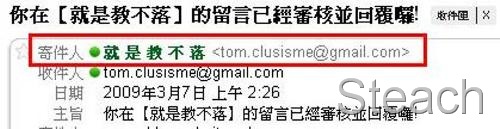 也有介紹到利用核淮後寄發的Mail外掛來通知留言者,留言者收到的寄件人就是系統的信箱,如果有人直接回覆詢問那可就麻煩囉。