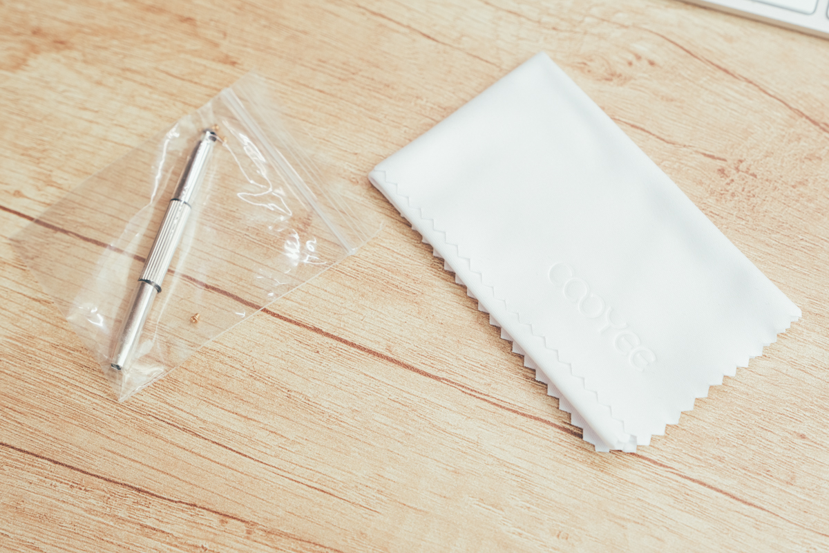 內附也有簡易的拆卸工具組跟補充螺絲,還有一塊擦拭布。