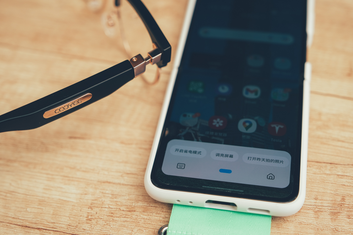 COOYEE 智慧柔光眼鏡內建的麥克風不僅可以用來通話,透過側邊雙擊(以使用說明書為主)也可以呼叫語音助理(Siri、Google Assistant、Samsung Bixby 都支援),不需要拿起手機就可以直接對語音助理下指令。