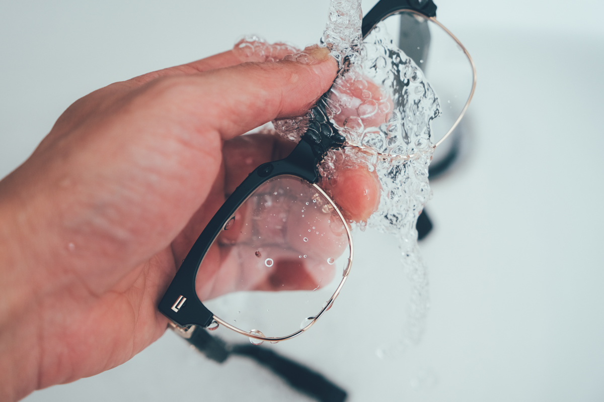 至於眼鏡平常要怎麼清潔呢?這我想很多人覺得結合了骨傳導藍牙耳機是不是就要注意碰水,答案是不用,因為 COOYEE 智慧柔光眼鏡支援 IPX67 等級防水防塵,可以直接水洗眼鏡沒有問題,完全不用擔心。