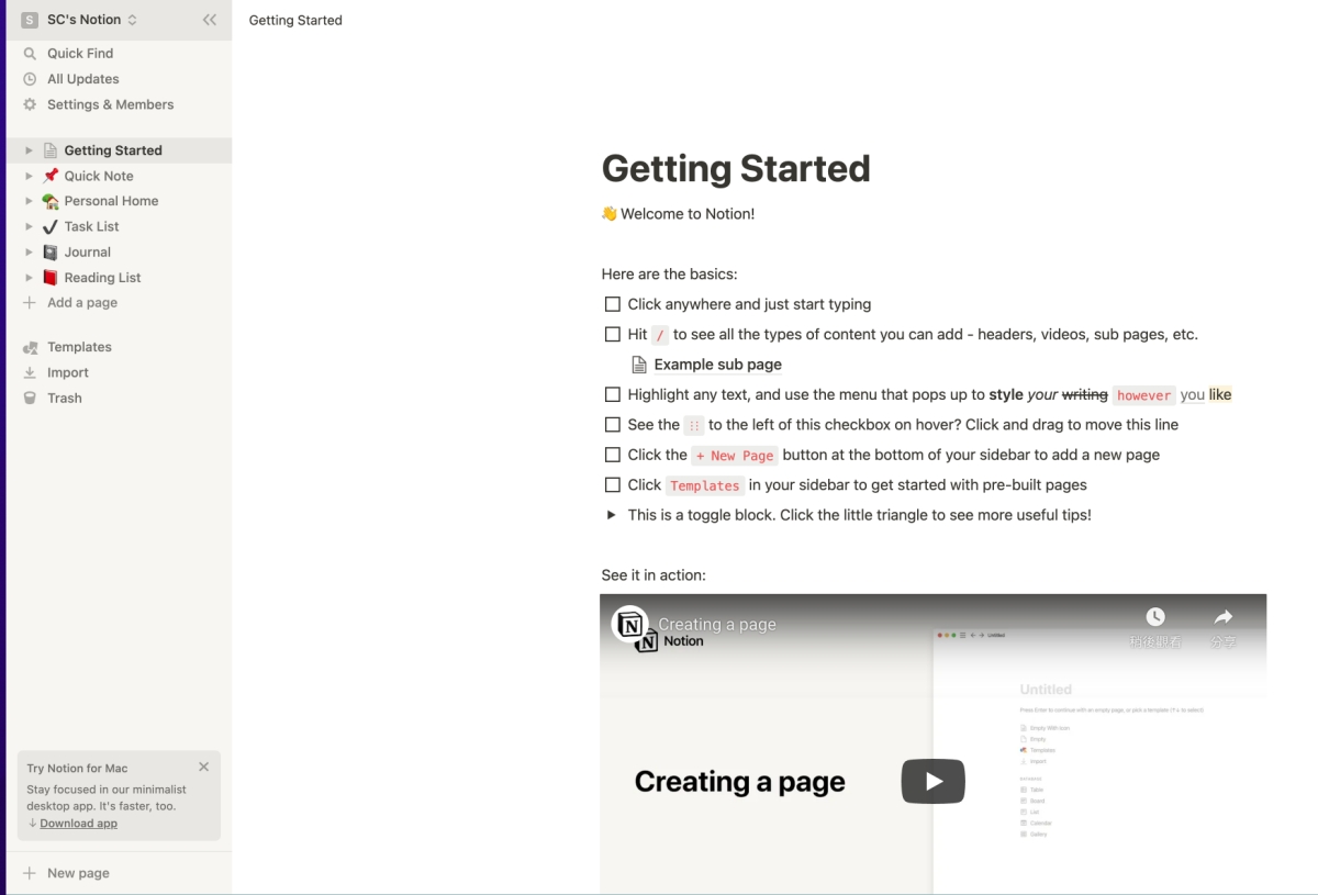 個人的部份是免費的,如果是企業使用就是會有試用期,我想很多已經在用 Notion 的應該駕輕就熟了吧。