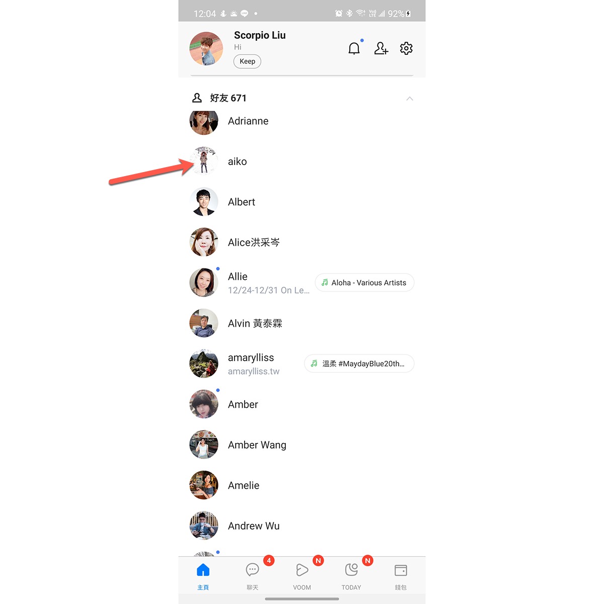 你看看這個好友名單,一堆 A 開頭的,我有 671 個好友,如果不改名稱的話,真的會忘記誰是誰,所以每當你加完一個好友後,記得可以先來改名稱,阿湯先說明一下,在你這邊改的名稱,只給你自己看的,跟對方無關,所以可以改成任何你方便查看的名稱。 只要先按一下對方的頭像。