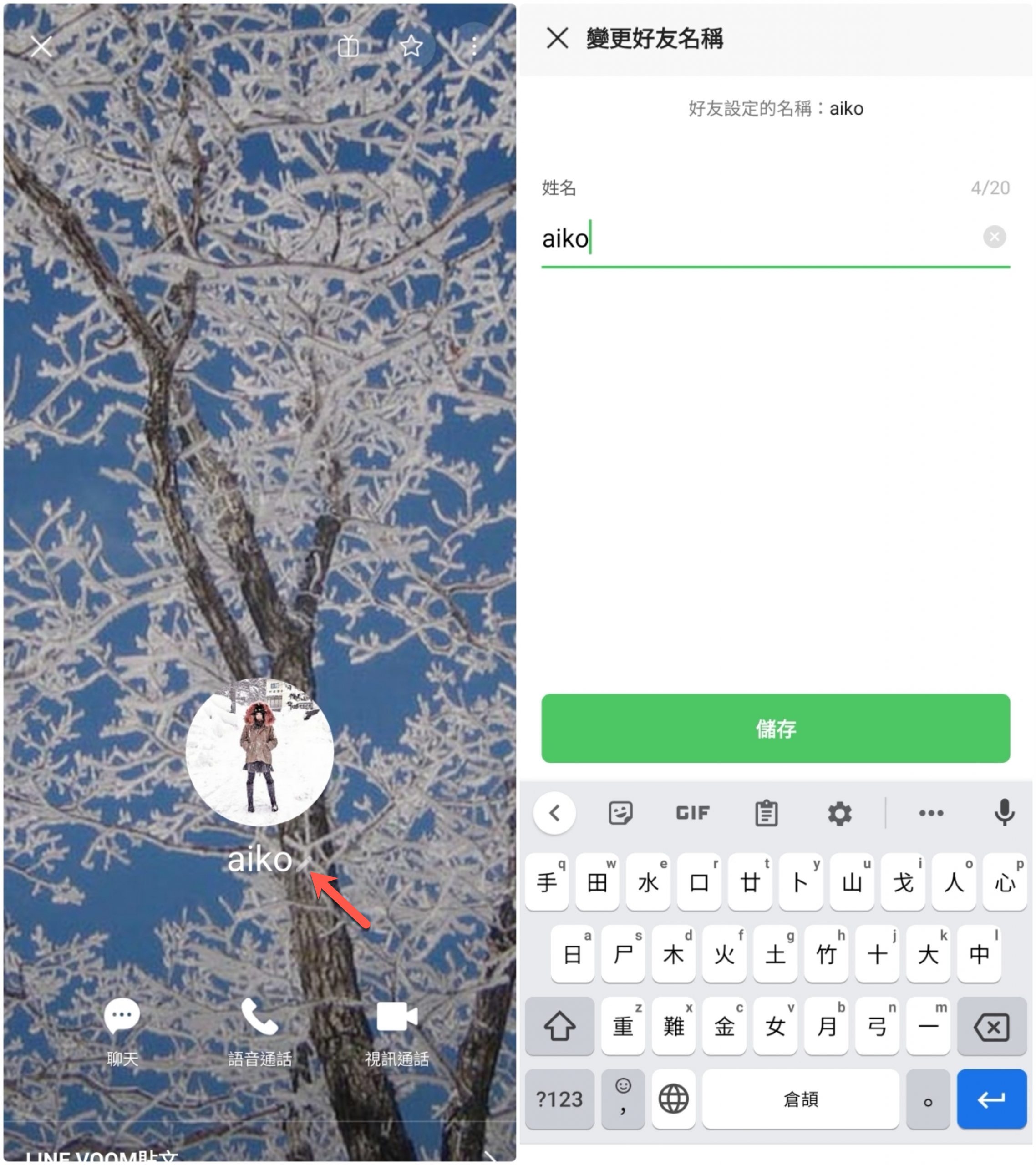 然後在名字旁會看到一支筆的圖示(可能不太明顯),按了之後就可以改對方的名稱囉,是不是很簡單,但真的超級實用。
