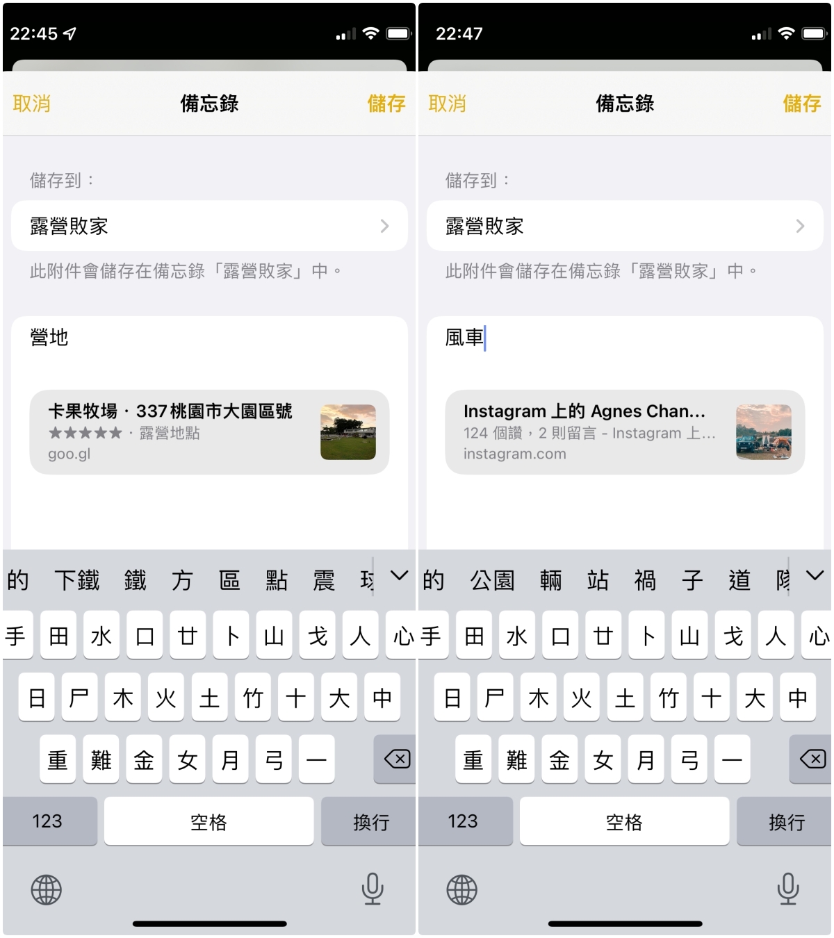 就像這樣可以各自的儲存到備忘錄裡。