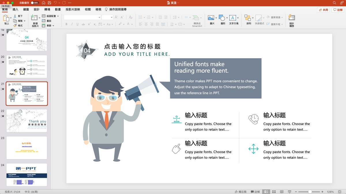 下載後就可以開啟來使用了,大部份的質感真的都蠻不錯的,做為參考使用是相當好用,直接修改成你的內容就好,不用擔心排版。