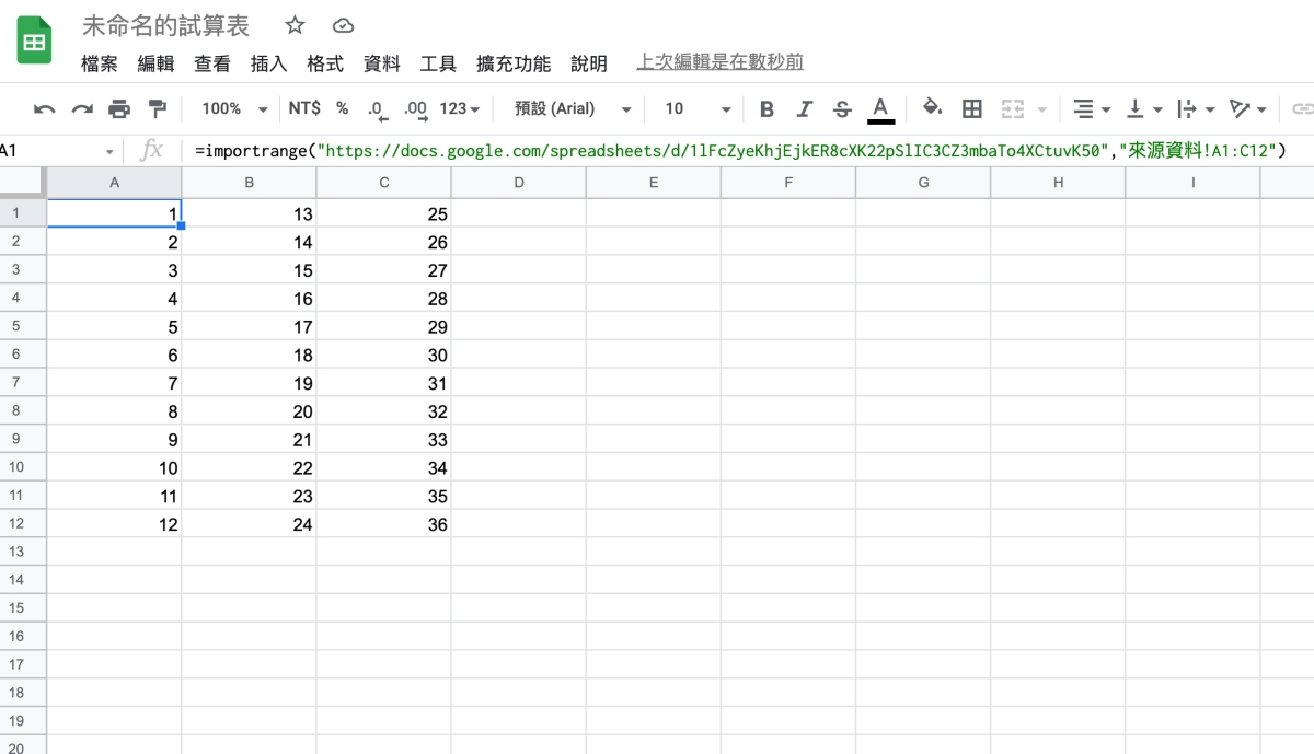Google 試算表教學「IMPORTRANGE 函數」