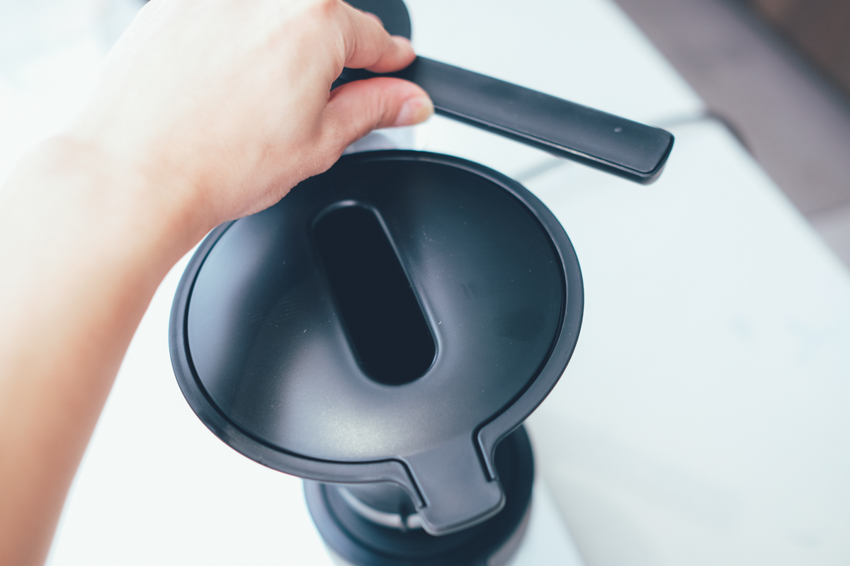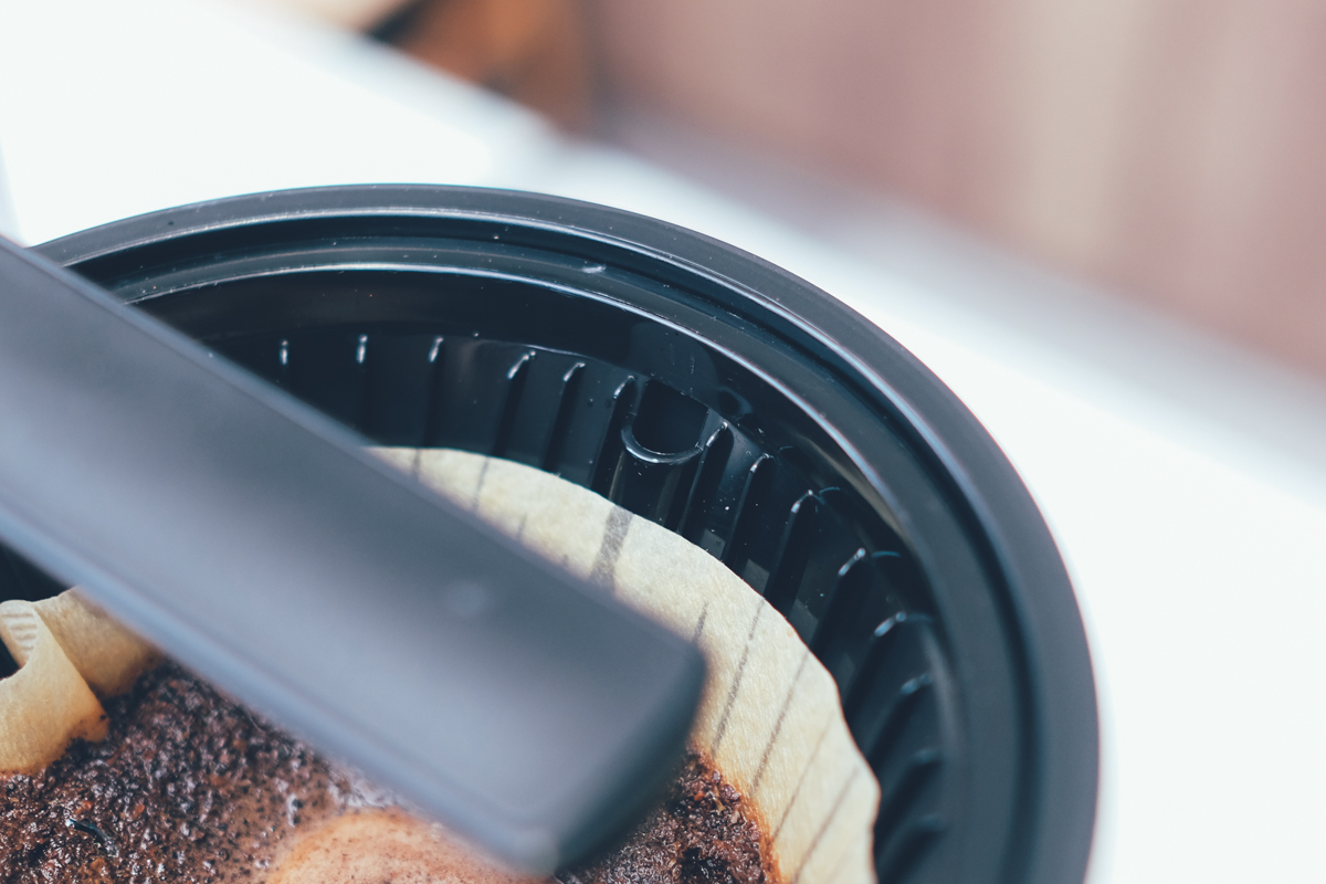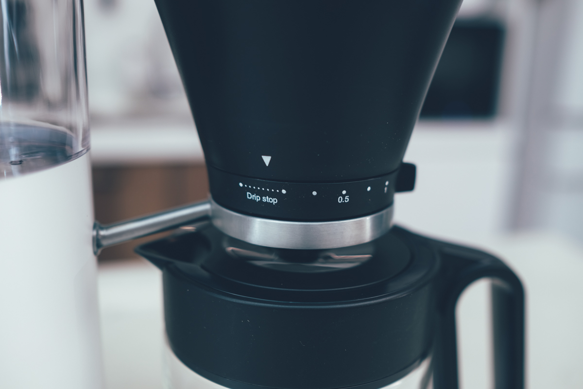 除了注水口仿手沖滴漏式外,在濾杯的下緣處也可以調整出咖啡的流速,如果你喜歡咖啡味道重一點、濃一點,那麼可以讓流速慢一點,或者直接旋轉到 Drip Stop,那麼就會暫停出咖啡,讓他多泡一下後你再旋轉放出來,這樣就算是固定的水量、咖啡粉,也能依照自己口味再做進一步的調整。