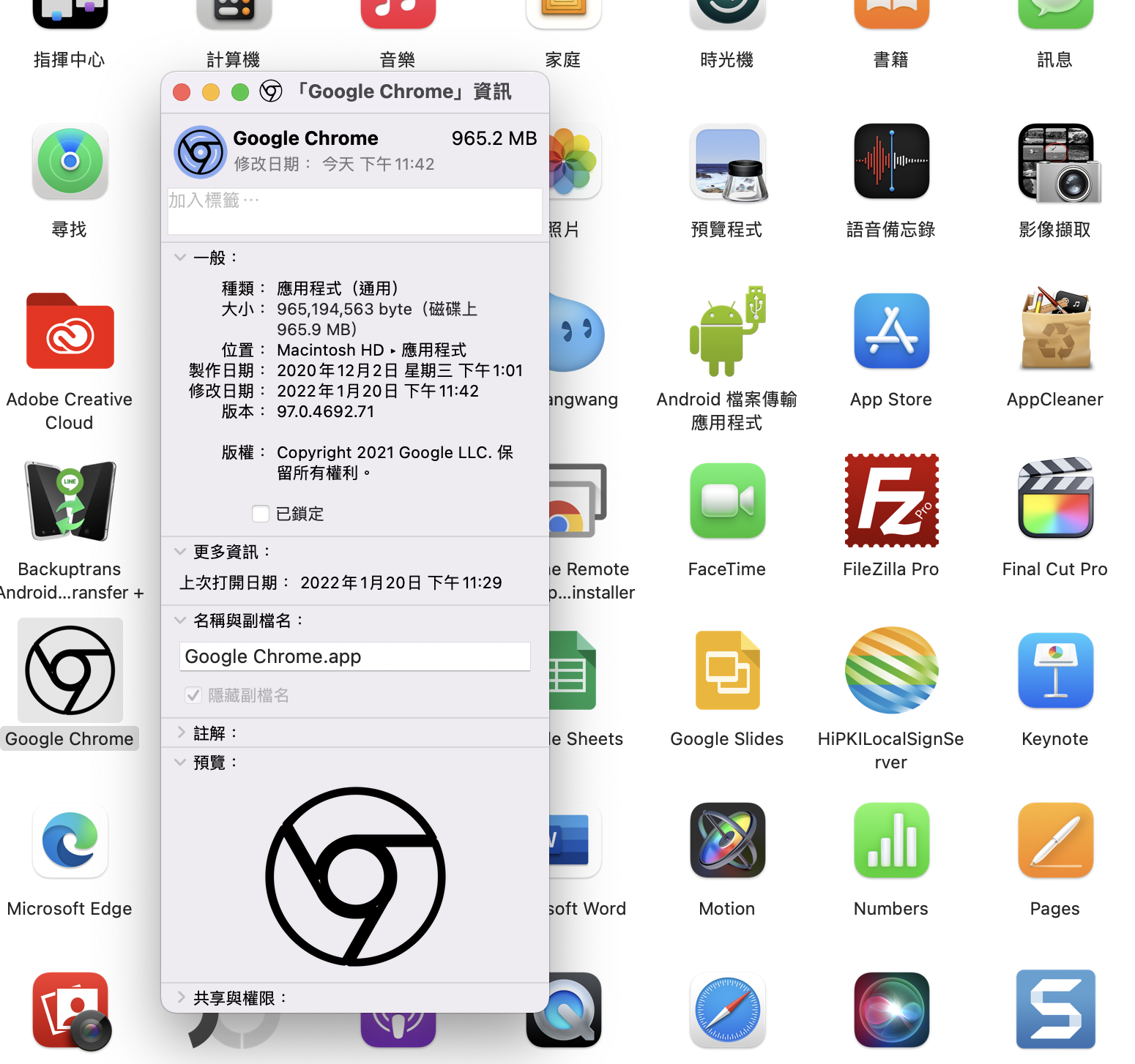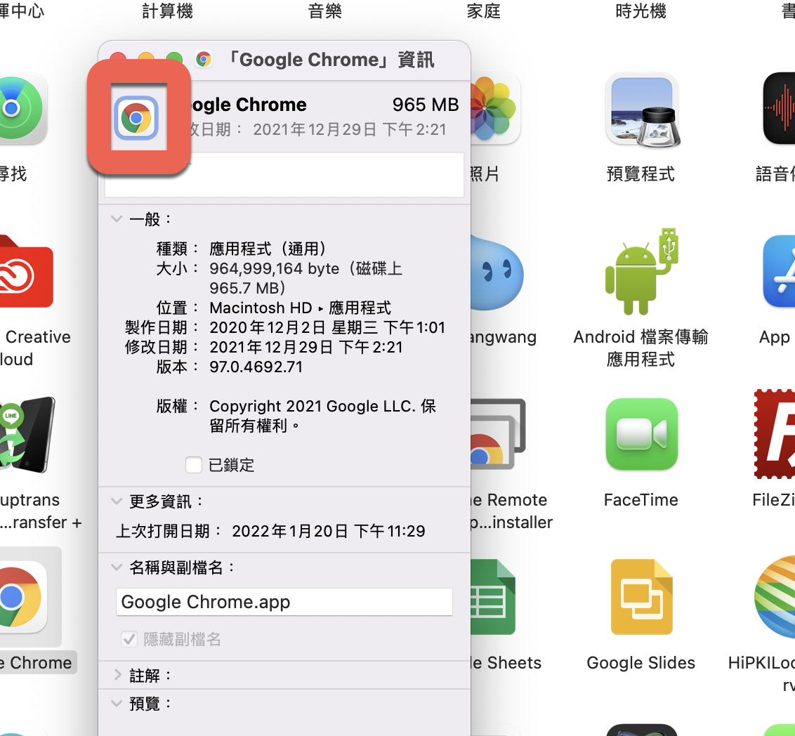 首頁 › 未分類 › macOS 教學 - 如何更換應用程式圖示? macOS 教學 - 如何更換應用程式圖示? 發佈日期:2022/1/21 作者:阿湯 分類:未分類 以前在用 Windows 系統時,很常會搞東搞西,特別是非常愛更換軟體圖示,有人問 macOS 能夠換嗎?macOS 因為可以換的設定沒有很清楚,所以大多數人不知道怎麼換,或去哪裡換,今天就來分享一下 macOS 應用程式圖示的更換方法,比較可惜的是,系統圖示似乎不能更換,只能更換額外安裝的,但也 OK 啦,先學起來再說。 macOS 教學 - 如何更換應用程式圖示? 首先先去下載你想要更換的圖示,選擇後按下 Command + V。 然後去到你想更換的應用程式圖示右鍵,進入「取得資訊」。 按一下左上的小圖示,選取,再按下 Command + V。 這樣就更換成了,是不是相當簡單,不過系統圖示會無法更換,其它都可以試看看。