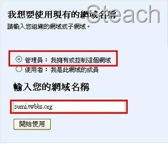 進入申請頁面:http://www.google.com/a/cpanel/domain/new?hl=zh_TW